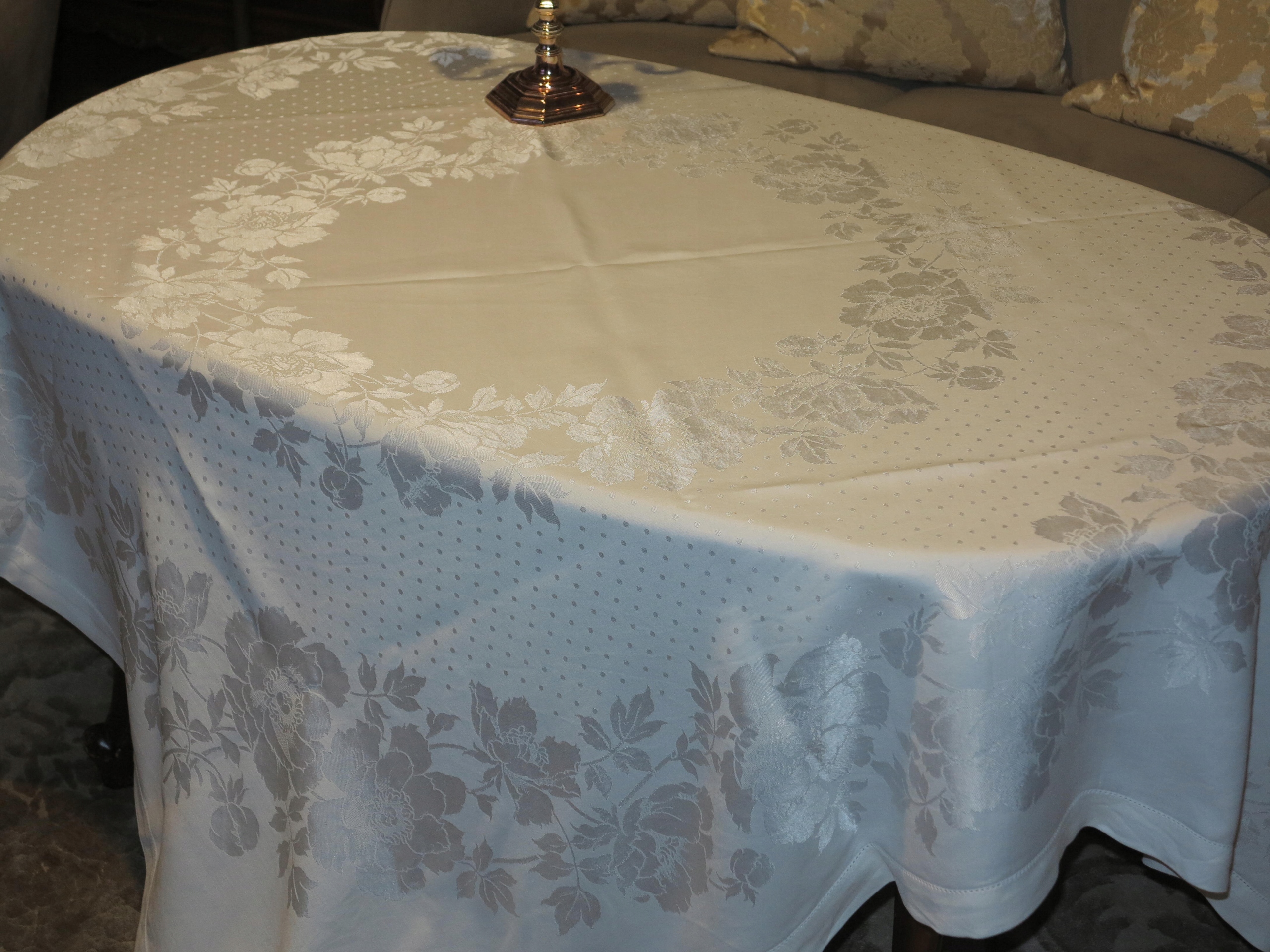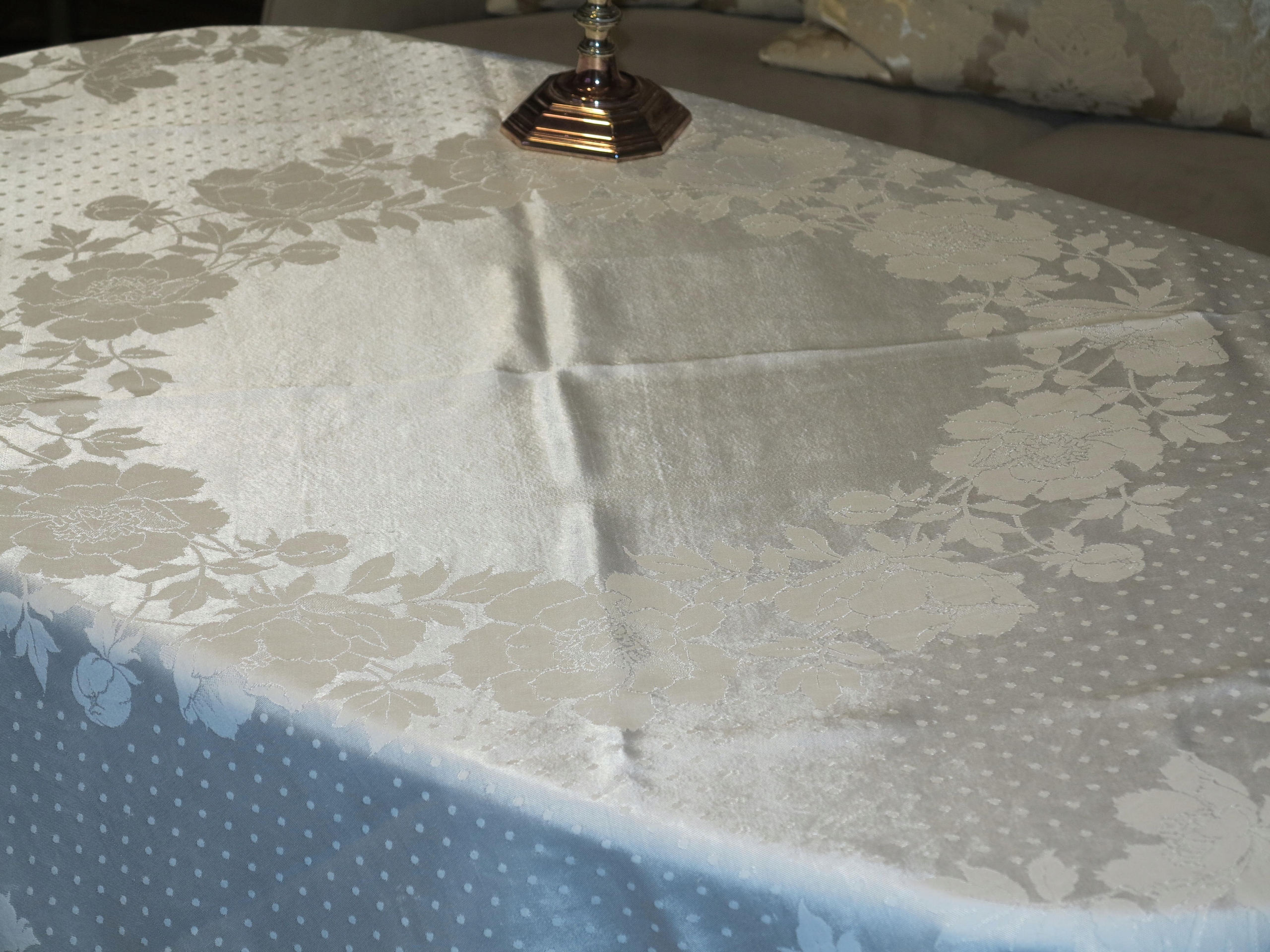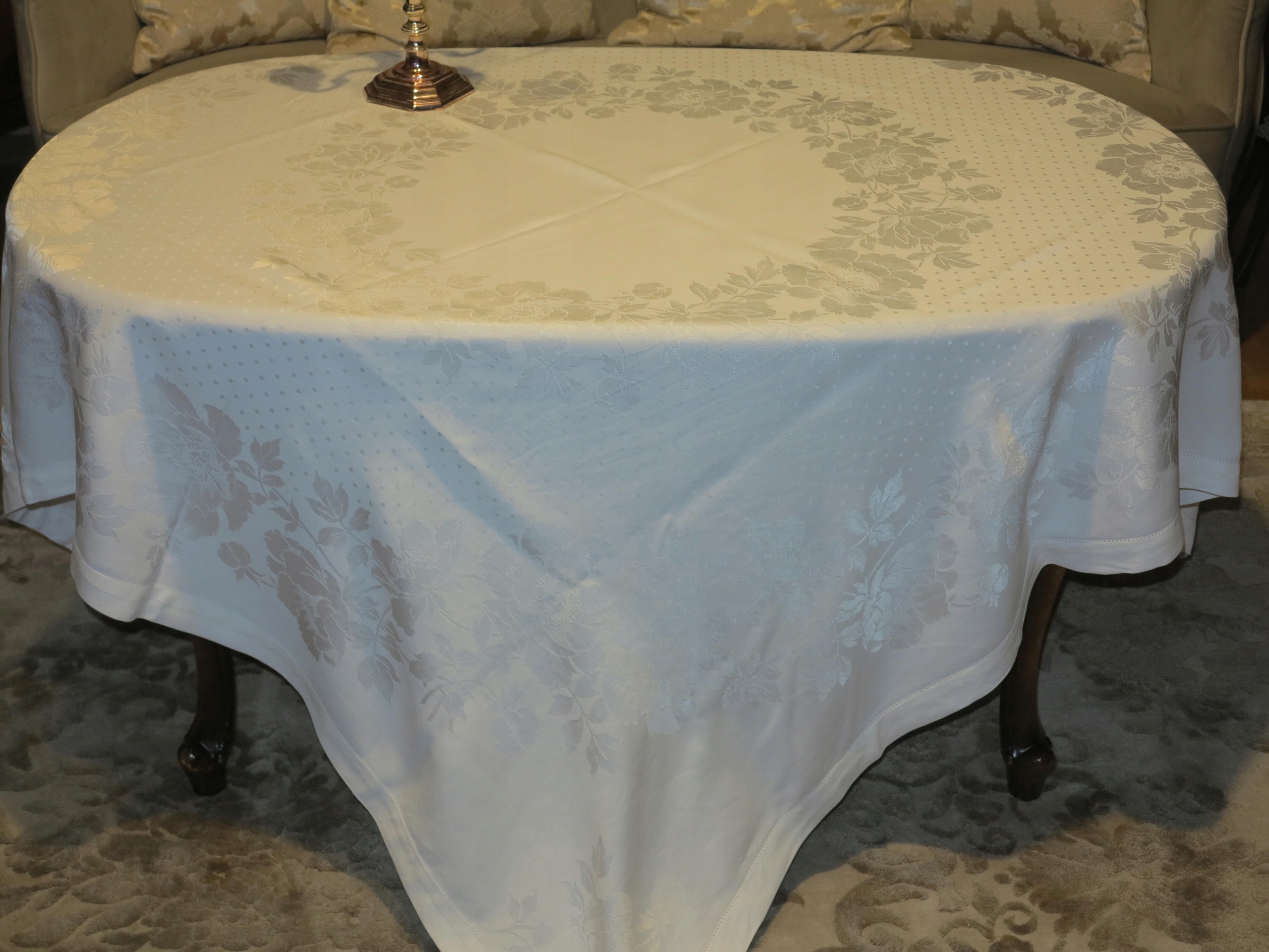 На аукціоні продається надзвичайно красива дамаська скатертина з візерунками троянд. Скатертина має розміри: довжина 154 см, ширина 151 см. Скатертина б/у, в чудовому стані. Рекомендую, буде гарною прикрасою столу. Рекомендую.