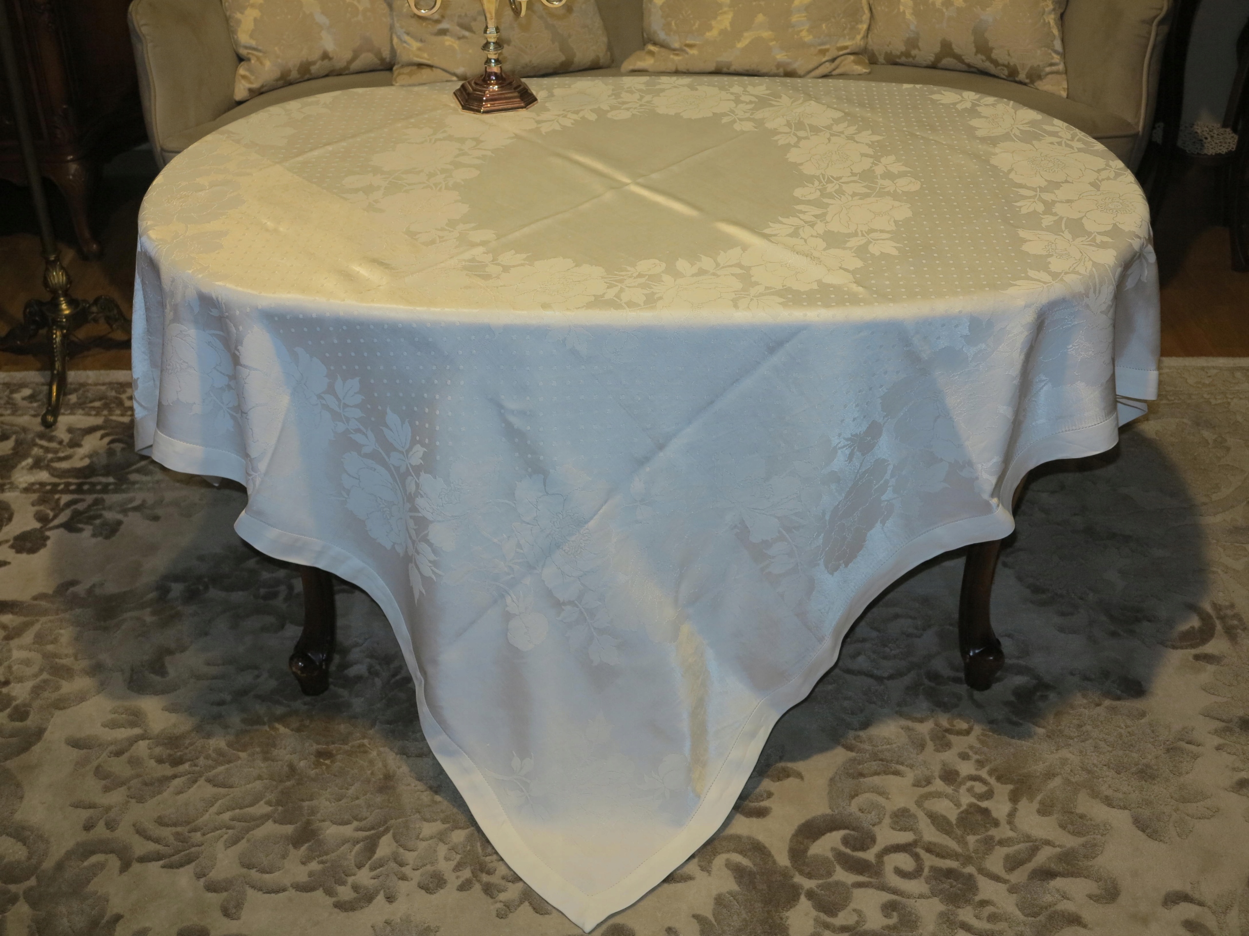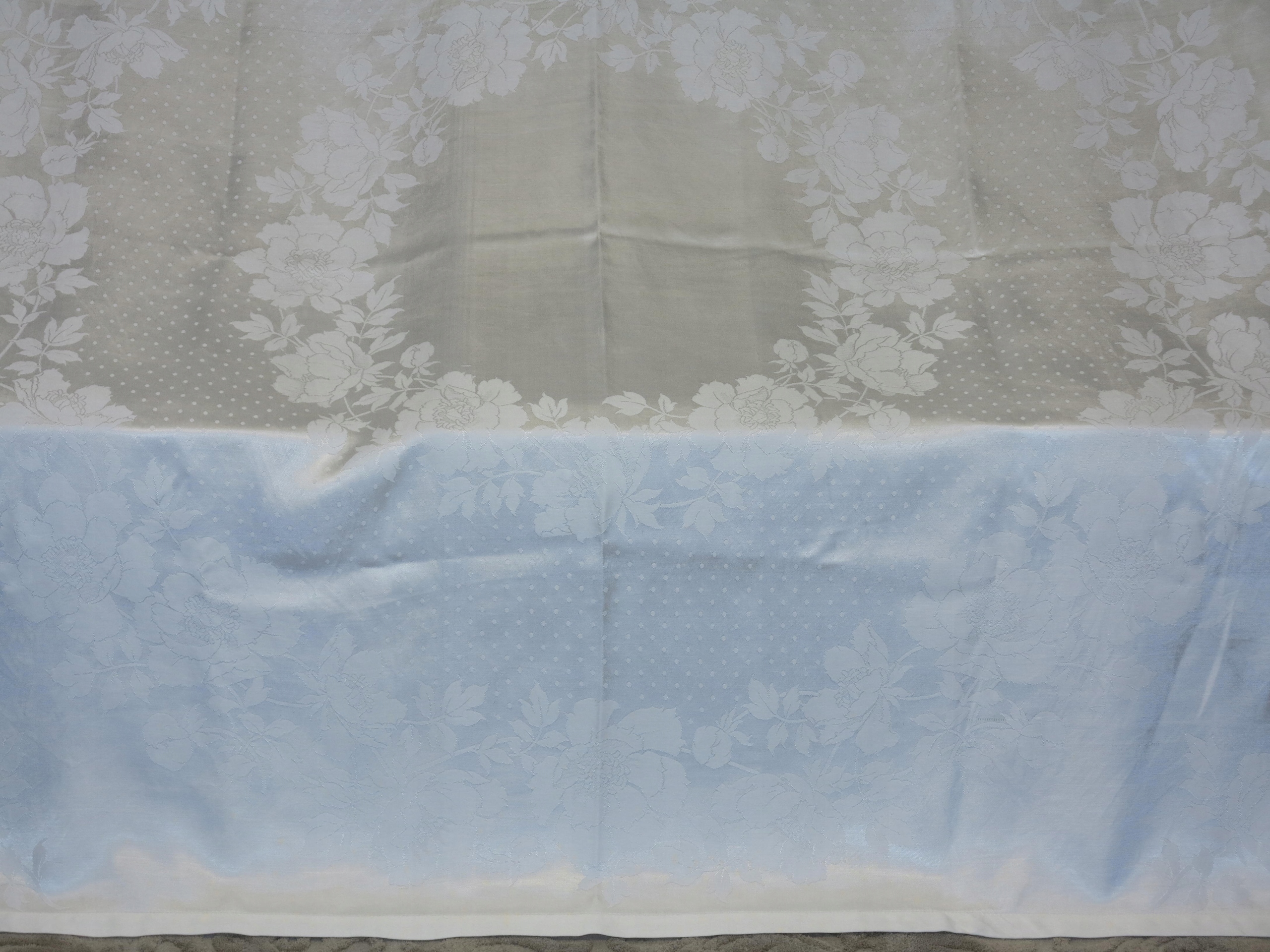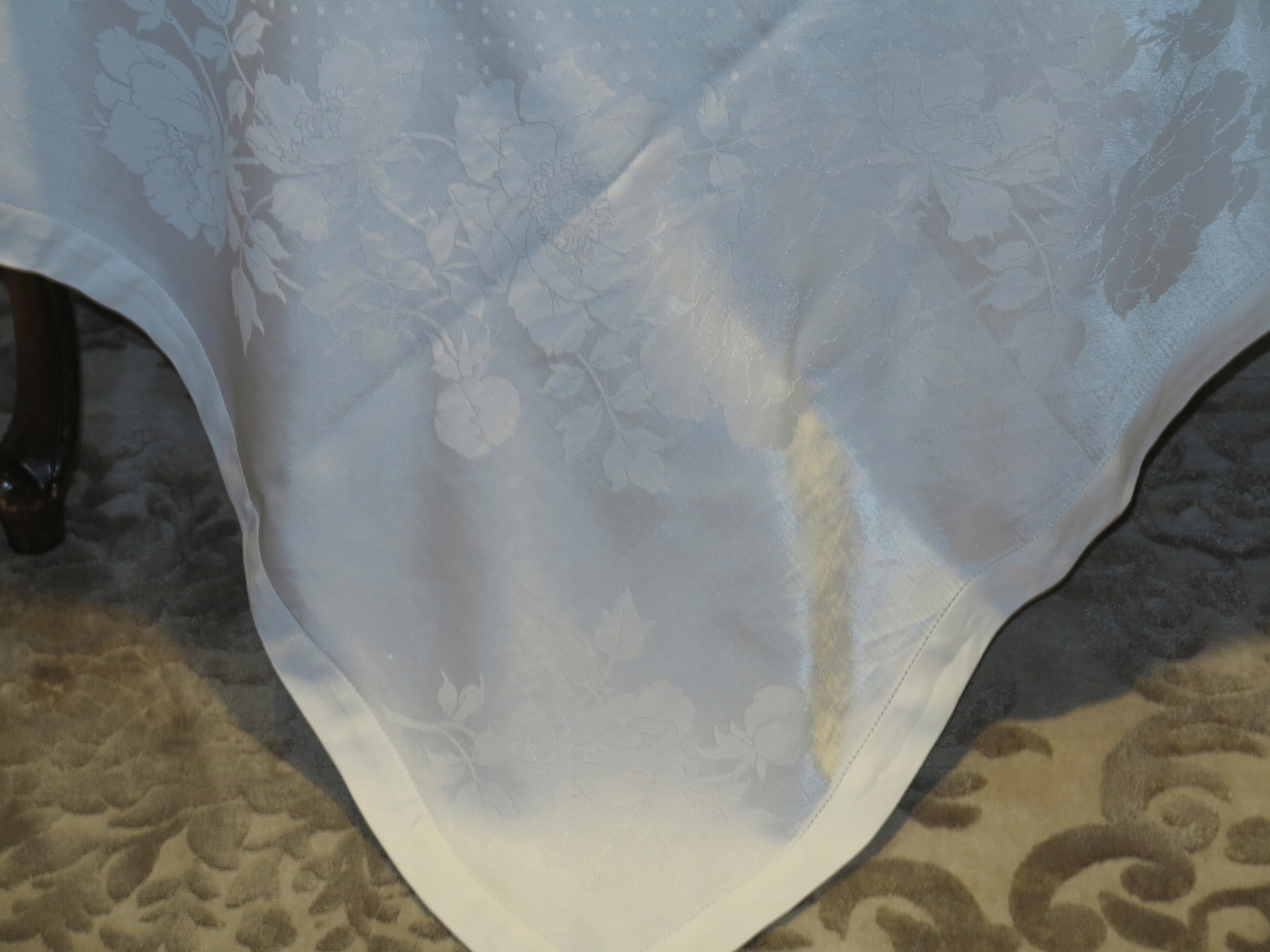 OKAZ-DWUSTRONNY BIELUSIEŃKI OBRUS BAW.-JEDWABNY ADAMASZEK RÓŻE MEREŻKI
