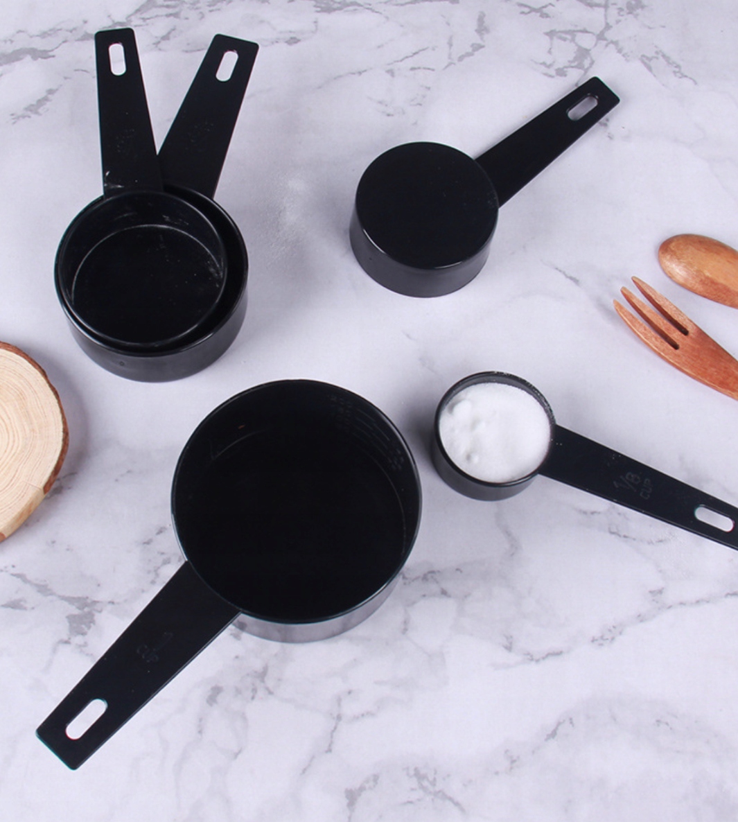 ✅ Кухонні мірні чашки елегантного чорного кольору, виготовлені з міцного пластику.