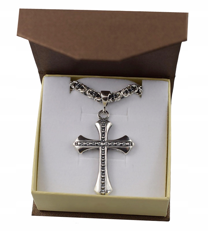 Предмет продажу Срібний ланцюжок королівського плетіння з хрестиком. Комплект новий з биркою, безпосередньо від виробника. Упаковано в стильну італійську скриньку для коштовностей. Це було точно зроблено. Має безпечну застібку, яка запобігає його поломці. Крім того, він окислений, що надає йому унікального вигляду. Виготовлений із чистого срібла 925. Клеймо Державної пробірної служби.