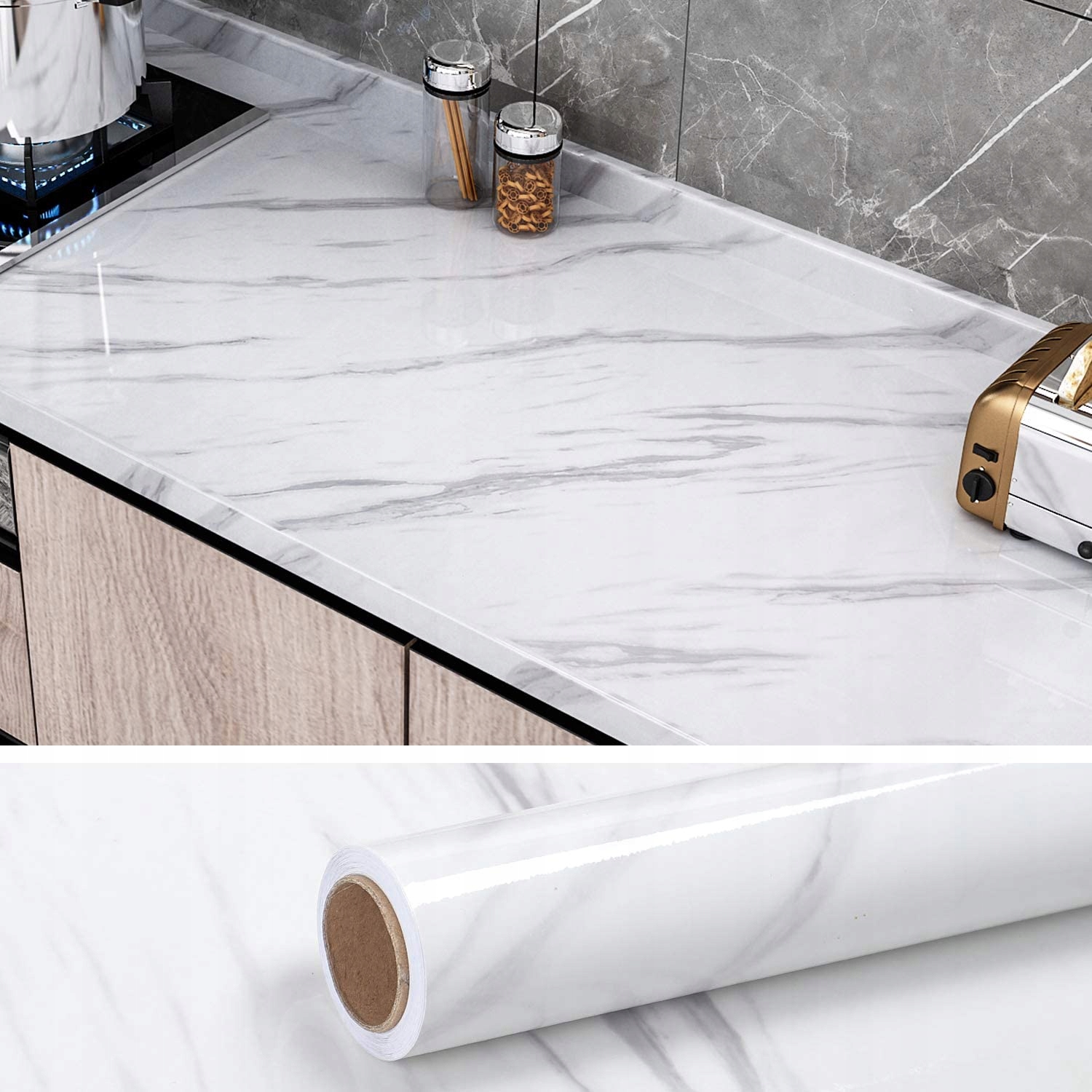 🍴🍴 Великий розмір: Особливо підходить для кухонних стільниць, меблів, столів, шаф, ящиків, полиць, виробів ручної роботи, столів, полиць, дверей, посудомийних машин, холодильників, пральних машин, задньої стінки кухні для стіни.