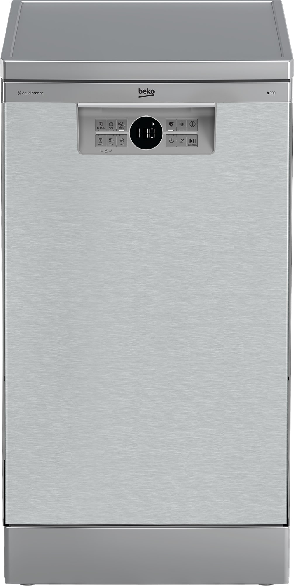 Окремо стояча посудомийна машина класу енергоспоживання E та сріблястого кольору з 10 комплектами посуду та 6 програмами миття. Beko BDFS 26020