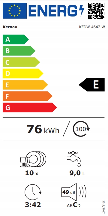 ВИСОКА ЕФЕКТИВНІСТЬ МИЙНОГО КЛАСУ E Клас енергоспоживання наших посудомийних машин гарантує низьке енергоспоживання та ефективність пристрою. Завдяки цьому ми заощадимо значні суми грошей і гарантуємо дуже хороші результати прання.