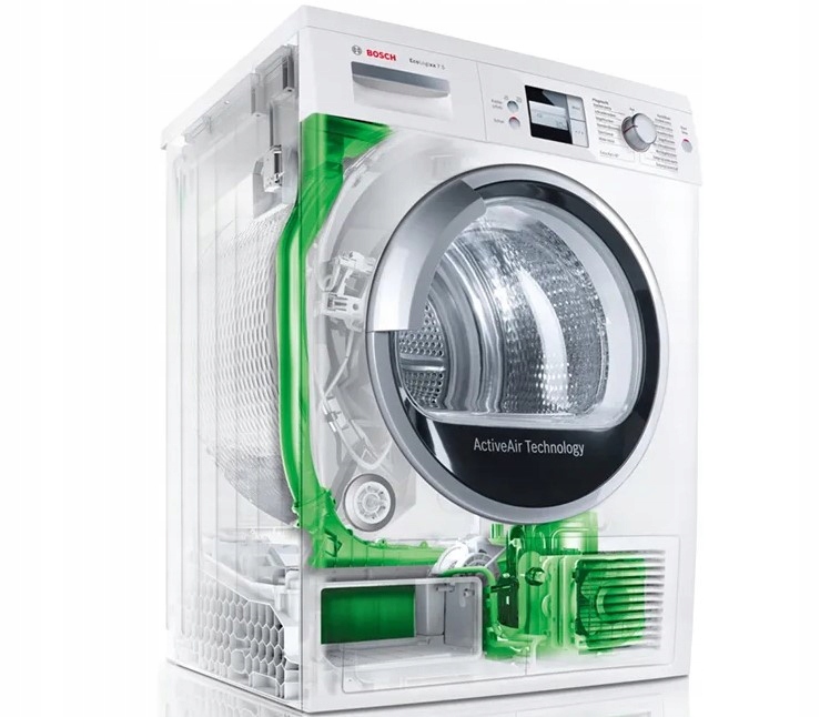 Інноваційна технологія теплового насоса, що використовується в сушарках Bosch, гарантує м’яке та енергозберігаюче сушіння. Завдяки використаним рішенням тканини сушать при нижчій температурі порівняно зі звичайними сушарками. Використання теплового насоса також дозволило значно скоротити споживання електроенергії, яка використовується в процесі сушіння. У сушильних машинах Bosch з тепловим насосом до одягу ставляться виключно дбайливо, як і в нашому бюджеті.