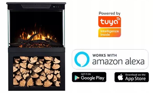 Всі функції каміна доступні по телефону. Камін також можна вмикати та вимикати за допомогою голосових команд за допомогою помічника Amazon Alexa.