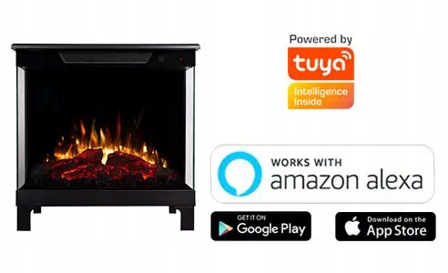 Всі функції каміна доступні по телефону. Камін також можна вмикати та вимикати за допомогою голосових команд за допомогою помічника Amazon Alexa.