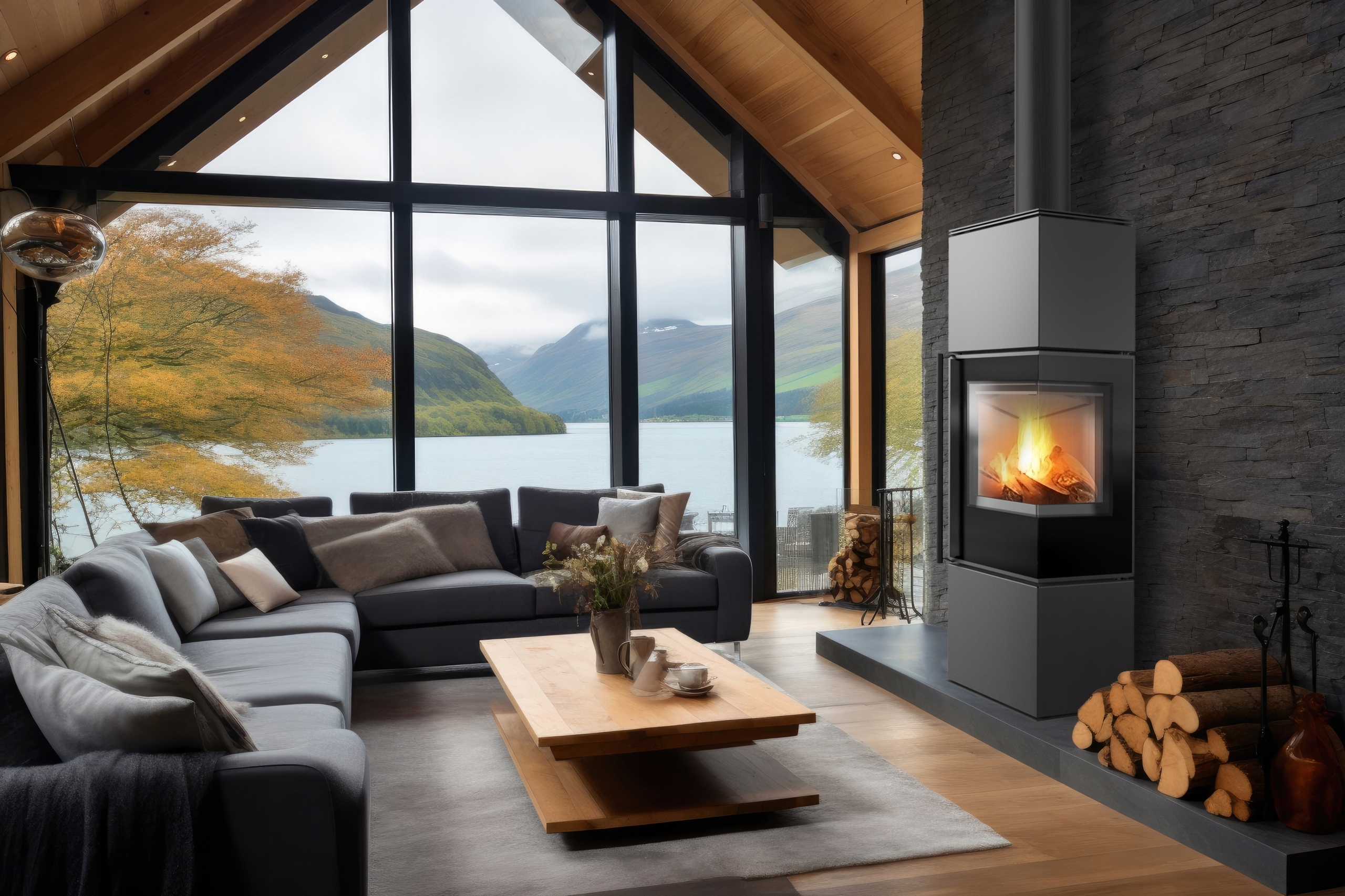 REN ідеально підходить для відкритих і напіввідкритих приміщень, привабливо поєднуючи, наприклад, кухню з їдальнею або вітальню з міні-кухнею. Це піч, яка не тільки забезпечує комфорт і безпеку, але також характеризується сучасним дизайном, який ідеально вписується в різні інтер'єри.