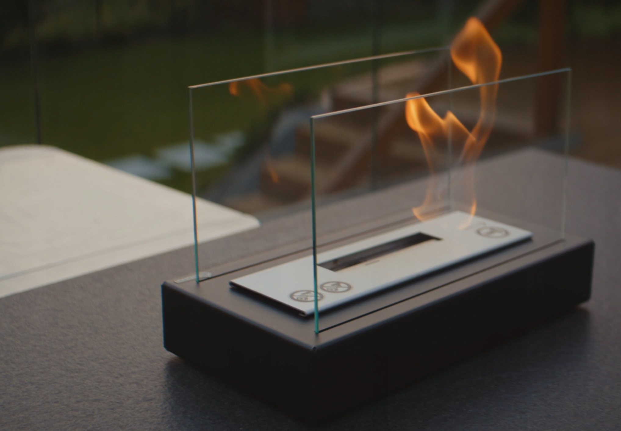 Вам не потрібно нічого зкручувати. Просто зніміть скло та контейнер із запобіжних пристроїв. Помістіть їх в отвори, і біокамін готовий до використання.
