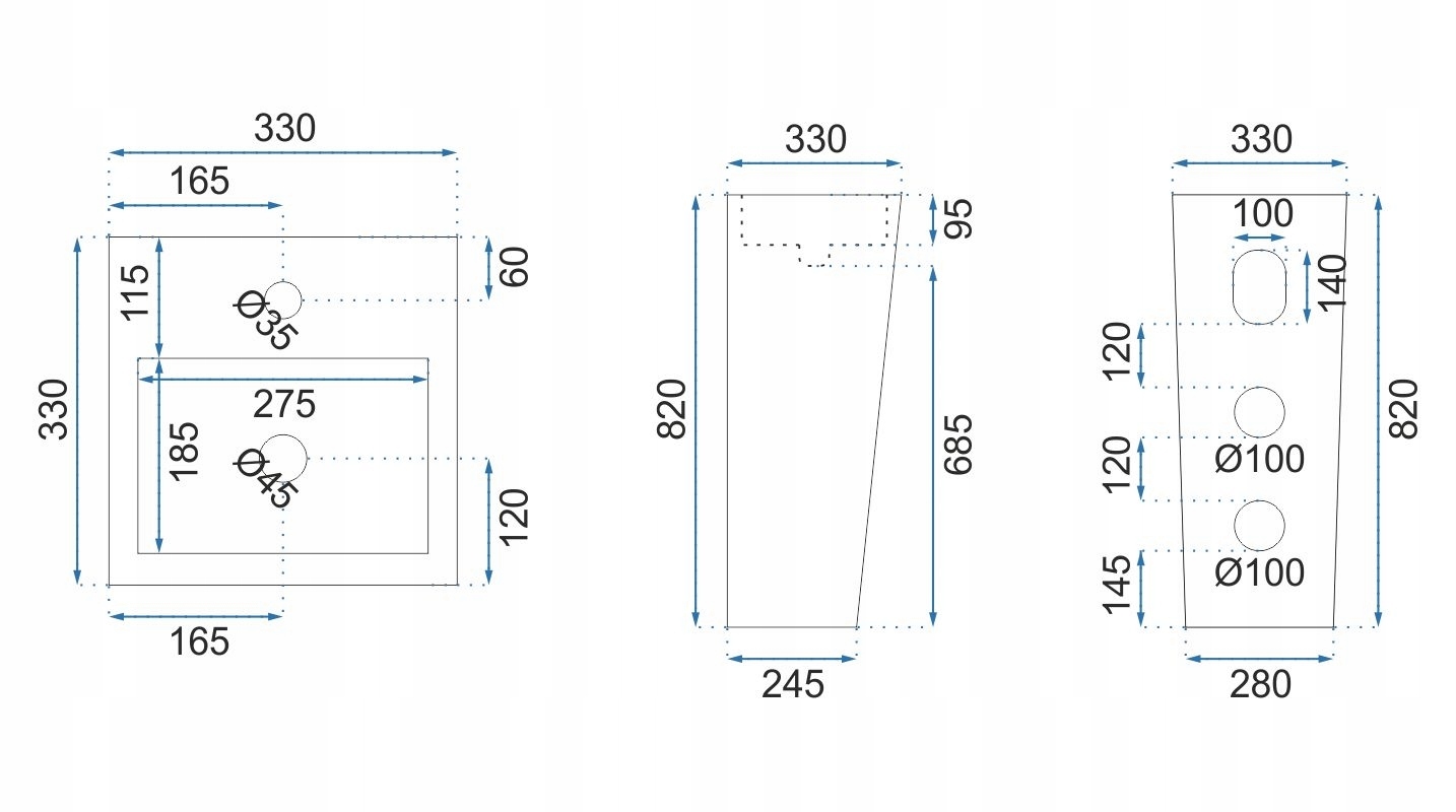 - Отвір для змішувача: 35 мм