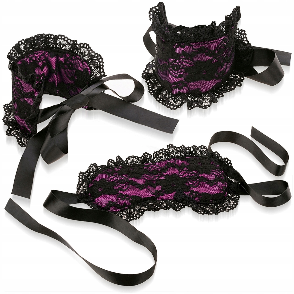 Чуттєвий комплект додасть вам неймовірного шику та елегантності, коли ви корчитеся в ліжку. Пов'язки для очей і рук виготовлені з оксамиту, обробленого мереживом, наповненим губкою з внутрішньої сторони. Вони кріпляться тонкою стрічкою, яку ви зав’язуєте навколо голови або рук. Завдяки цьому користуватися ним надзвичайно комфортно і він чудово виконує свою роль - він захоплює і засліплює вас, віддаючи на милість вашого партнера.