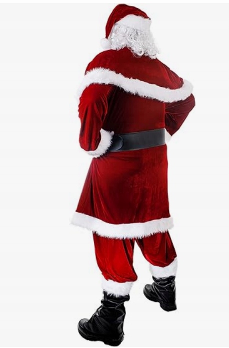 ВИКОРИСТАНИЙ, ОКСАМИТОВИЙ костюм Діда Мороза з МІШКОМ ДЛЯ ЦУКЕРОК ДЛЯ ХОРОШИХ ДІТЕЙ і НОВИНКА: ДОДАТКОВИЙ РУКАВ - ДЕКОРАТИВНА КУРТКА, ОЗДРОБЛЕНА ХУТРОМ, і ЧОХАЛ - ВЕРСІЯ ДЕЛЮКС