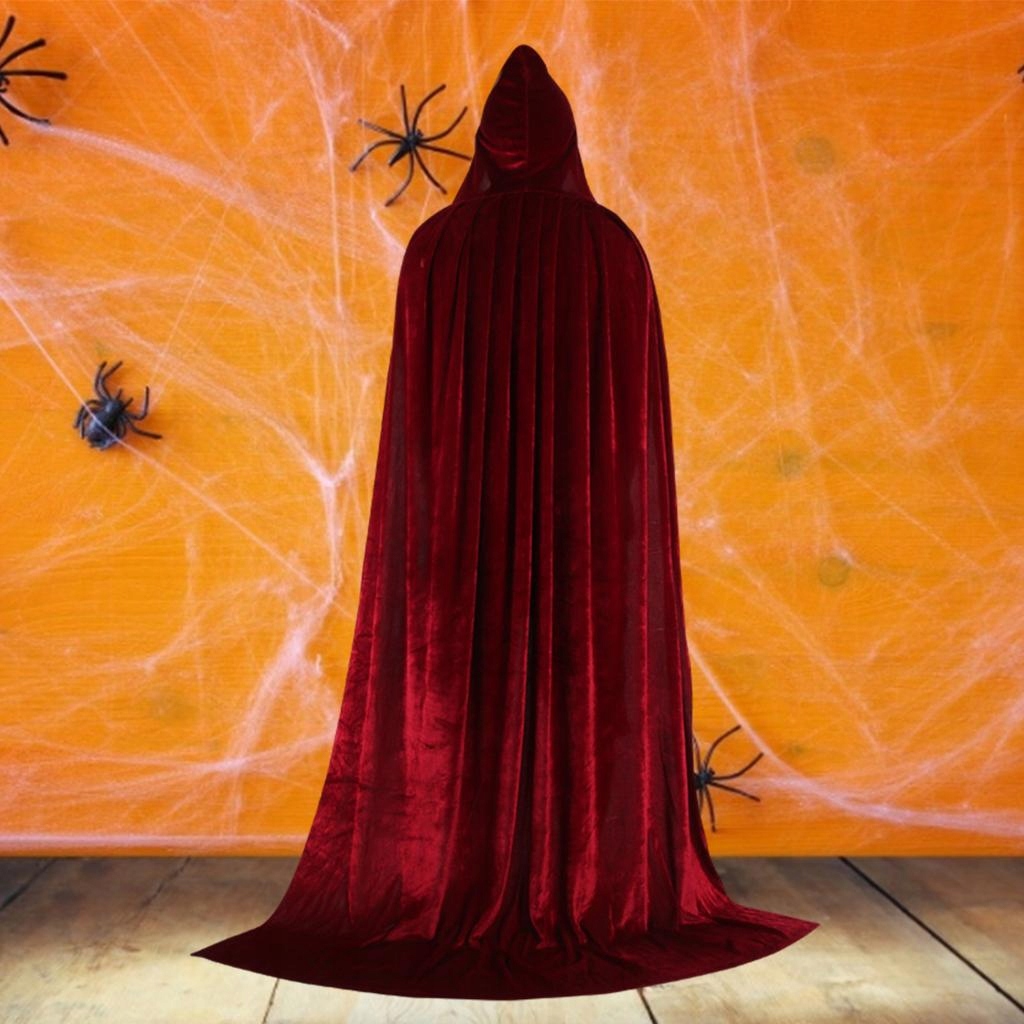 Оксамитове пальто з капюшоном довгим халатом відьом 150 см червоне вино