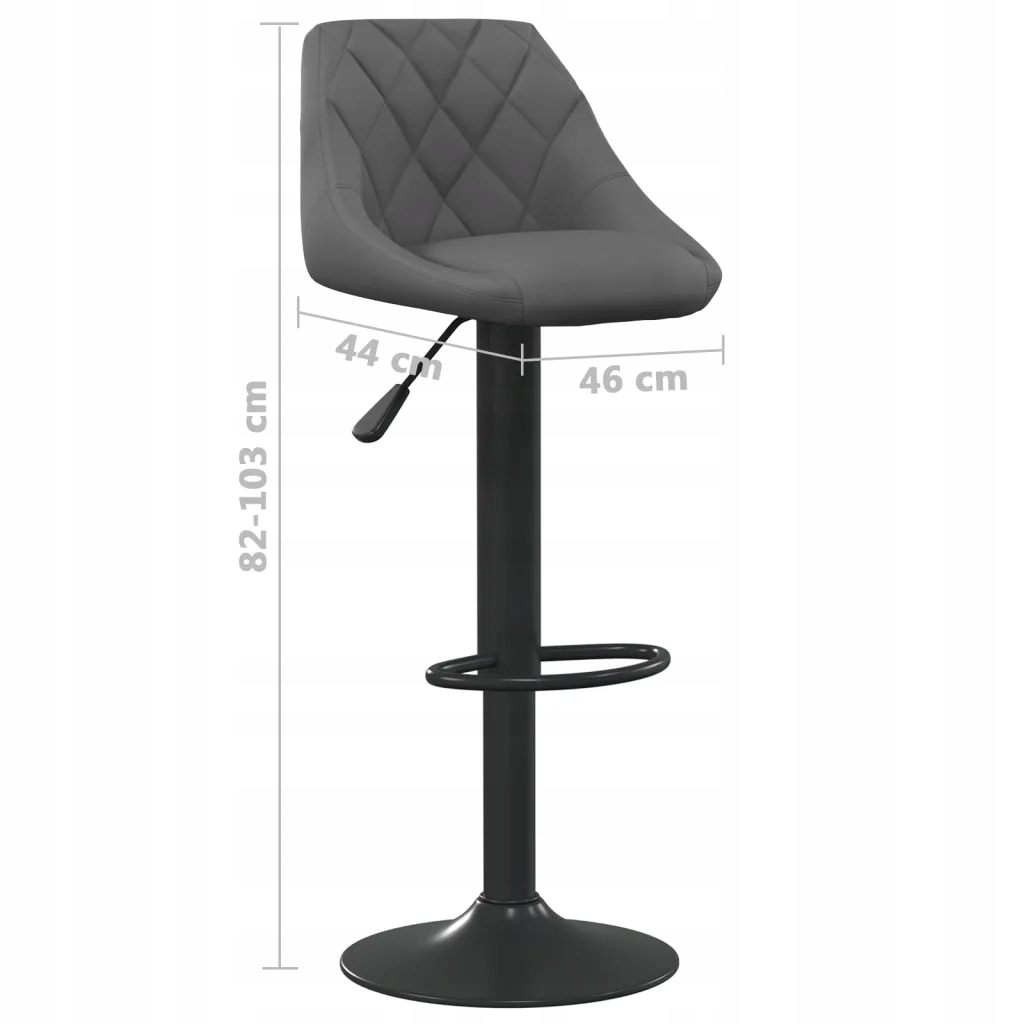 Оксамитовий поворотний барний стілець, темно-сірий 46x44x(82-103)см