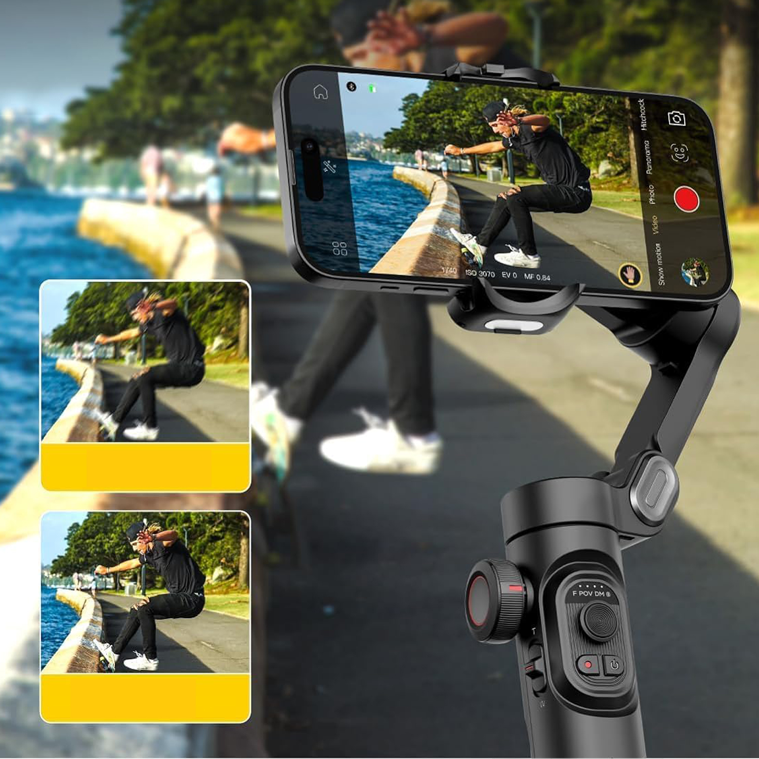📱За допомогою стабілізатора ви також можете легко записувати професійні відео у вертикальному та горизонтальному форматах за допомогою лише один клік