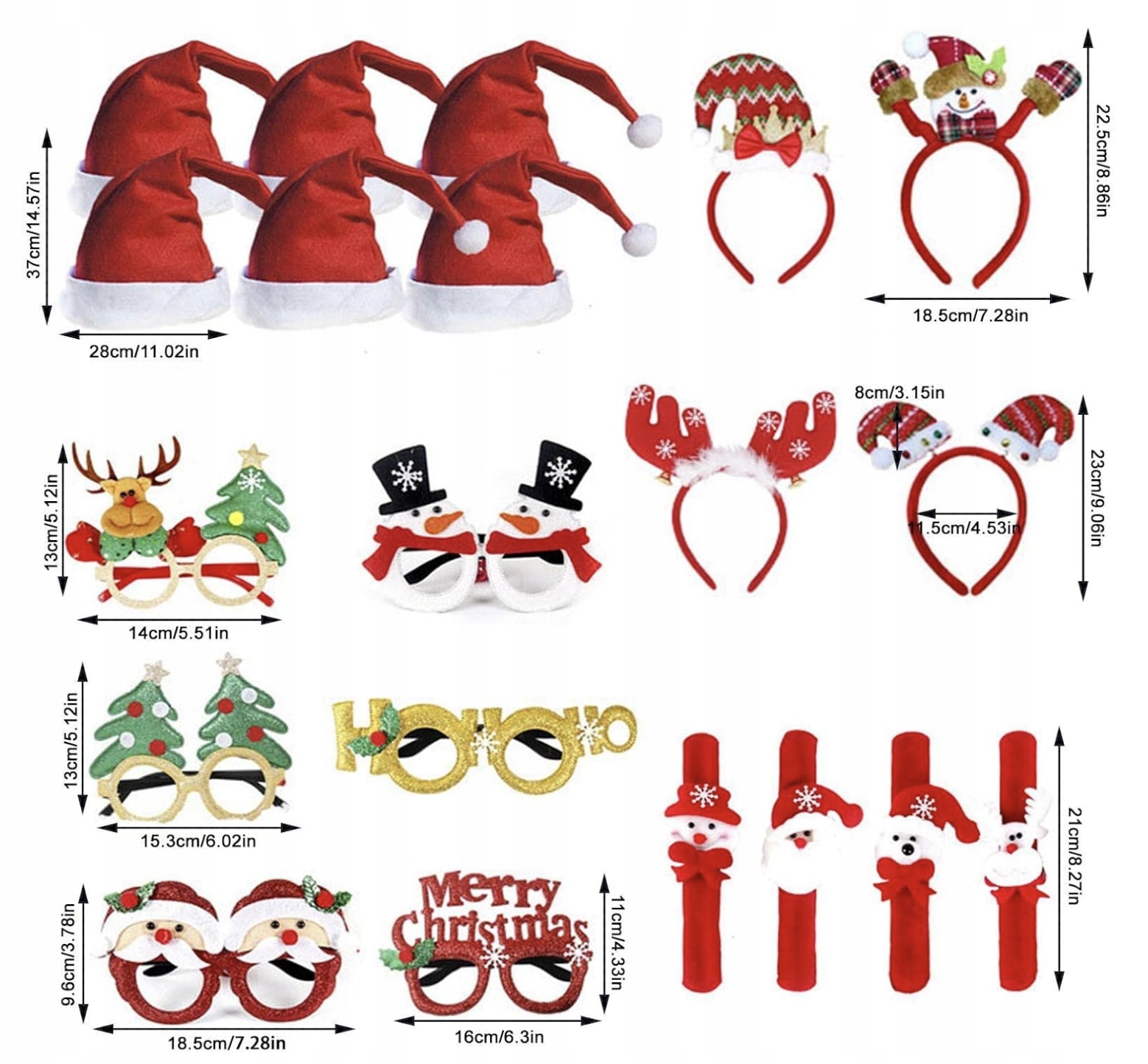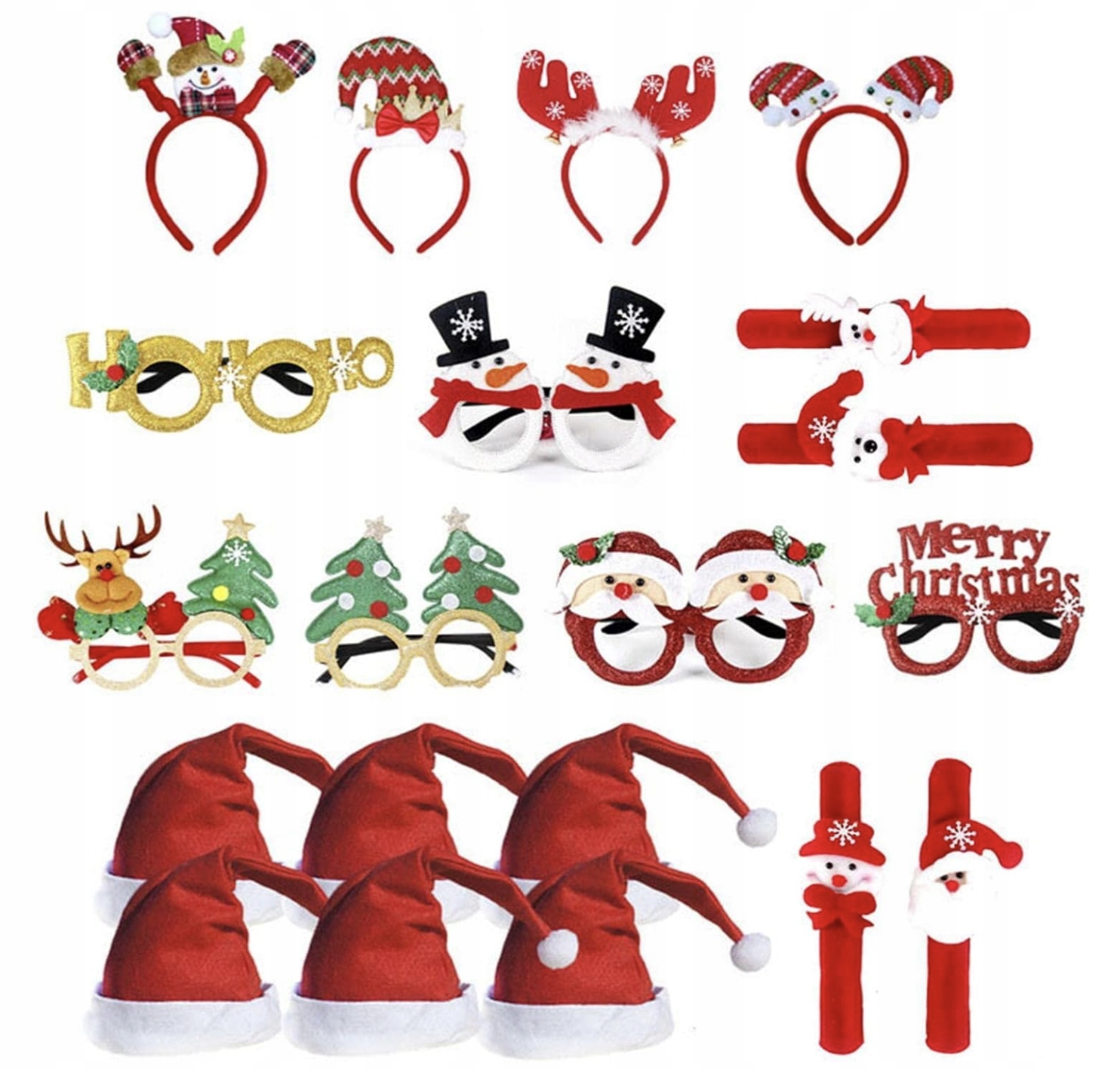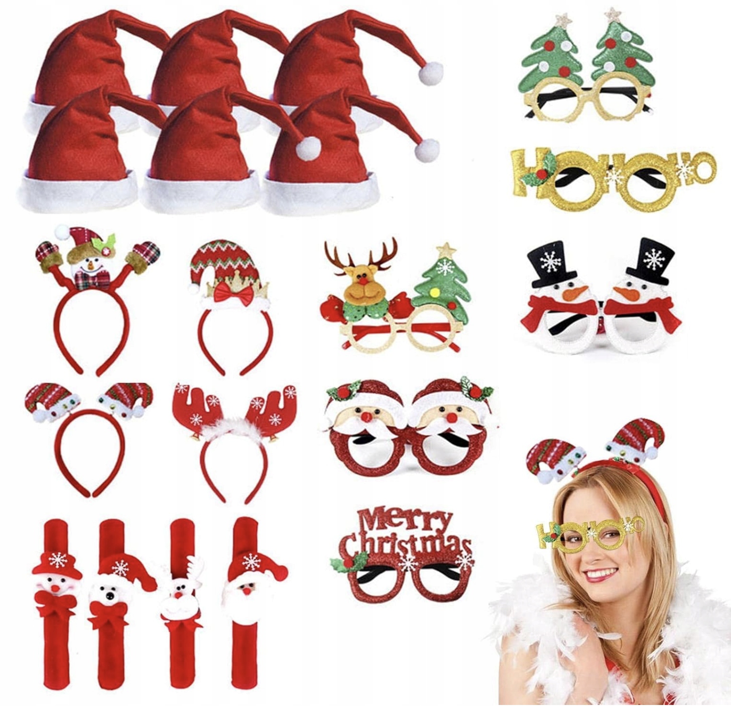 OKULARY CZAPKI MIKOŁAJA ŚWIĄTECZNE ŚWIĘTA BOŻE NARODZENIE ZESTAW
