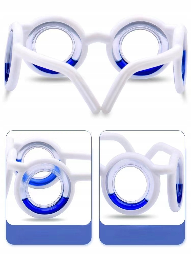 ☑️ Окуляри проти заколисування не мають лінз, але вони постачаються з колесом із рідкими стекламиi.