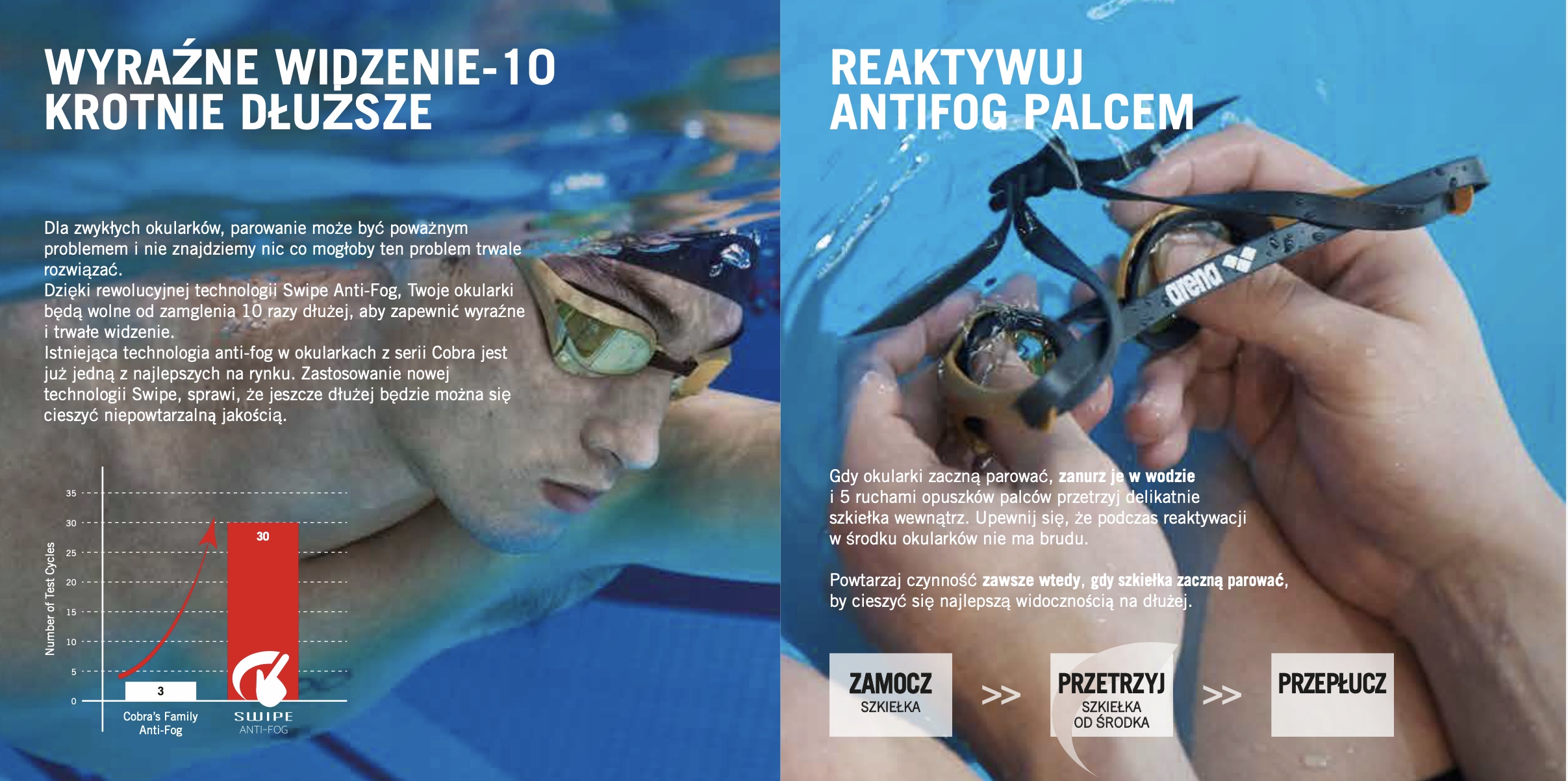 Кобричні дзеркальні окуляри Cobra - це модель гравця арени для професійного та аматорського плавання, яке використовується найкращими плавцями у світі. Наразі це найкращі стартові окуляри з арени. Вони поєднують ідеальну, гідродинамічну форму, чудову та оптимальну зону перегляду. Виготовлений повністю з міцних матеріалів, таких як полікарбонат, ТПЕ або силікон без ПВХ (популярний "пластик"). Надзвичайно легкий і в той же час дуже довговічний. Виготовлені в технології Vision Vision з гідродинамічною формою, вони мають сильно сплющені та жорсткі лінзи, які мінімізують водостійкість, з широким склянкою склянок. Ніс регулюється в п'яти розмірах, завдяки якому вони ідеально дотримуються форми обличчя. Вони також ідеально підходять для стрибків води. Подвійний ремінь з регулюванням RFA дозволяє швидко та точно встановити окуляри для обличчя. Окуляри мають сонцезахисний крем УФ, який захищає від шкідливого випромінювання та антифог -покриття, що запобігає надмірному випаровуванню. Додаткове дзеркальне покриття не тільки дає дуже ефективний вигляд, але й відображає більшість ІЧ -променів