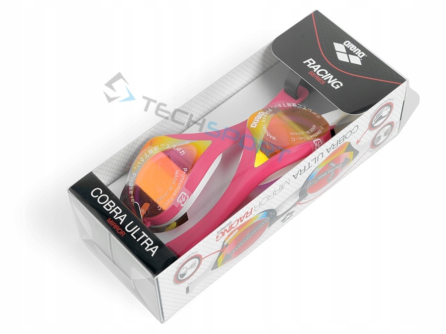 Окуляри COBRA ULTRA SWIPE - конкурентоспроможна модель від Arena для професійного та аматорського плавання, яку використовують найкращі плавці світу. На даний момент це найкращі стартові окуляри від Arena. Вони поєднують у собі ідеальну гідродинамічну форму, чудову посадку та оптимальну зону огляду. Виготовлений повністю з міцних матеріалів, таких як ПОЛІКАРБОНАТ, TPE або СИЛІКОН, без додавання ПВХ (популярного «пластику»). Надзвичайно легкий і в той же час дуже міцний. Виготовлені за технологією Forward Vision з гідродинамічною формою, вони мають сильно сплющені та тверді лінзи, які мінімізують водонепроникність, із широким кутом огляду лінз. Ніс регулюється в п'яти розмірах, завдяки чому вони ідеально підходять до форми обличчя. Вони також ідеально підходять для стрибків у воду. Подвійний ремінець з регулюванням RFA дозволяє швидко і точно підігнати окуляри під обличчя. Окуляри мають ультрафіолетовий сонцезахисний фільтр, який захищає від шкідливого випромінювання, і покриття проти запотівання, яке запобігає надмірному випаровуванню. Додаткове дзеркальне покриття не тільки надає дуже привабливий зовнішній вигляд, але й відбиває більшість ІЧ сонячних променів.