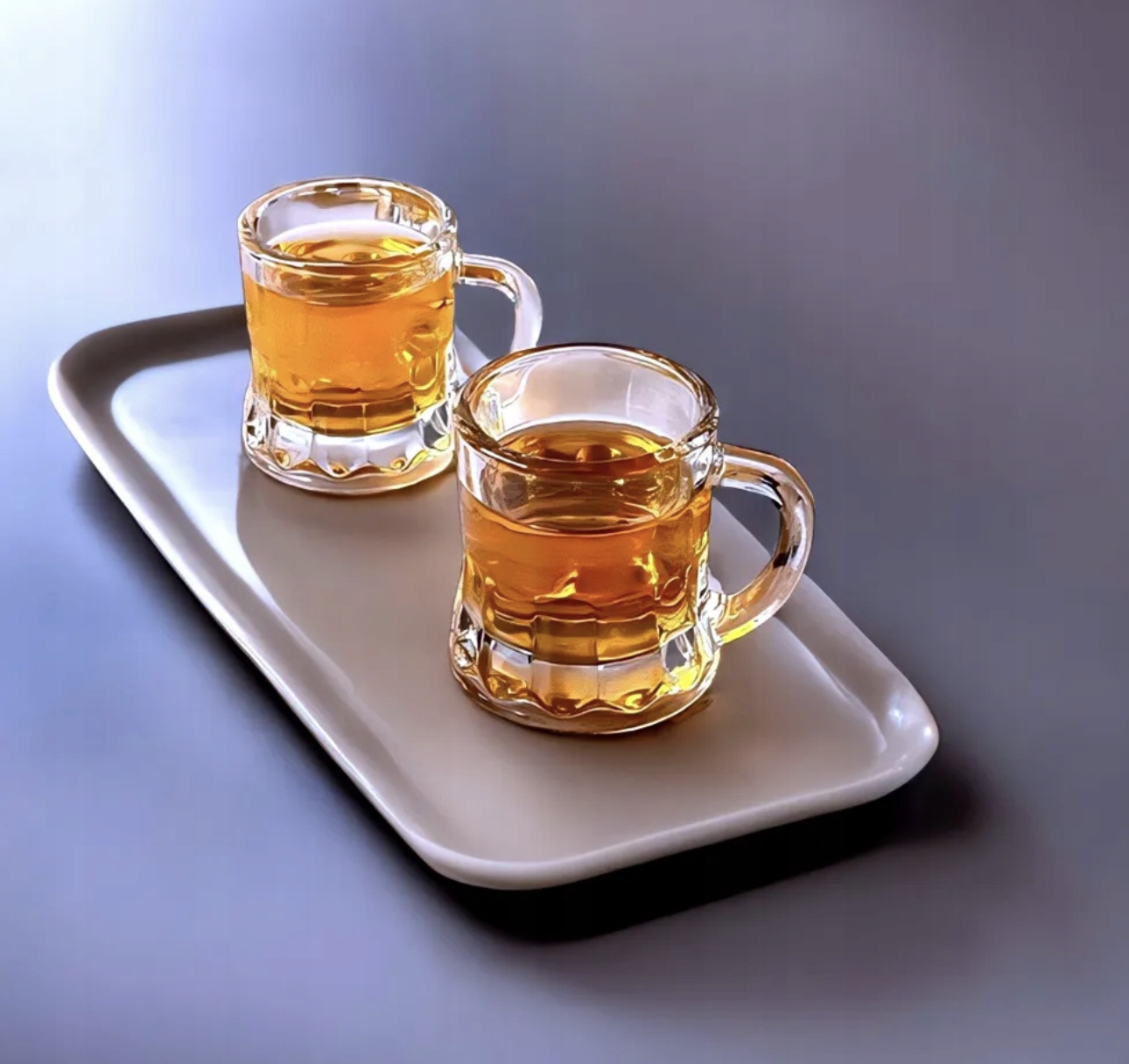 окуляри виготовлені з міцного скла, у них є ручка завдяки тому, що вони схожі на міні -пивні кружки. Ви можете прикріпити до них струну, щоб кожен чоловік був стежим за його келихом. Барвисті кадри виглядатимуть привабливими в них і ідеально підібратимуть сільський стіл у лимон або самогон. Вони також будуть чудовими як подарунок.