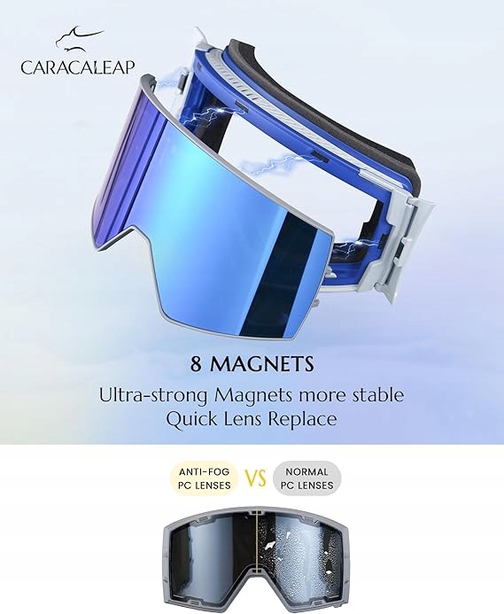 Надширока видимість і 100% захист від УФ-променів: безкаркасні лижні окуляри Caracaleap мають надзвичайно широку циліндричну лінзу, яка забезпечує панорамний огляд. Покриття лінз REVO надає схилам яскравий, прохолодний вигляд. Лінзи UV400 захищають очі від шкідливого ультрафіолетового випромінювання, запобігають втомі очей і пошкодженню сітківки. Ці лижні окуляри ідеально підходять для різноманітних видів спорту на снігу, таких як катання на лижах, сноуборді та снігоходах ❄️