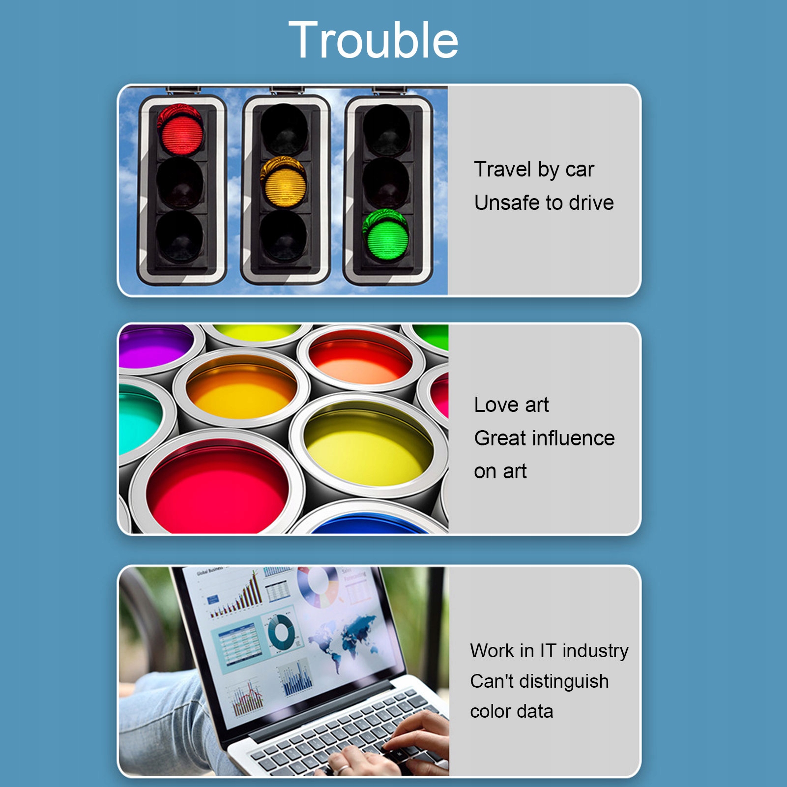 Особливість: 1. Поліпшене двостороннє покриття: висока проникність світла, поліпшення чутливості до кольору, допомога в належній ідентифікації кольору, придатних для людей із сліпотою в червоно-зелених кольорах та людей поганого кольору.