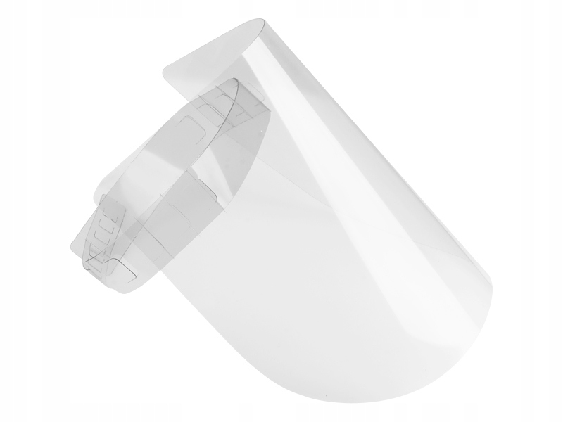 має можливість відповідати окружності голови та відстані панелі від обличчя. Поліпропілен товщиною 0,4 мм безпечний, він не зривається, не відбивається. Підходить для використання багаторазового використання, просто очистіть його дезінфікуючими речовинами на основі алкоголю.