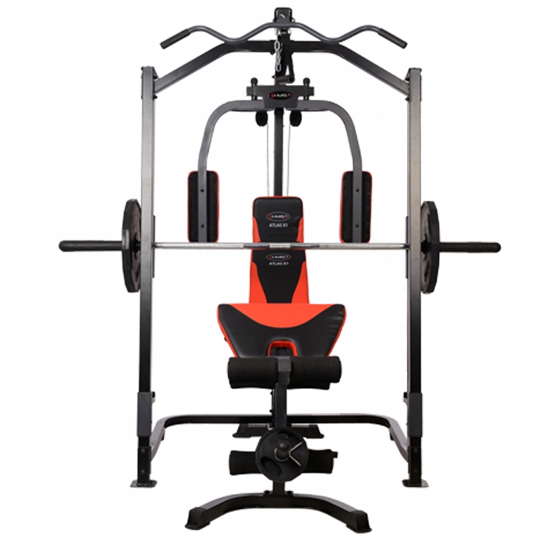 ⚫Atlas X1 HMS⚫ - сучасний тренажер Сміта, призначений для комплексного тренування всього тіла. Його повне оснащення задовольнить навіть найвимогливіших користувачів. Пристрій має нижній і верхній шків, проповідник і пристрій для тренування м'язів ніг і батерфляїв. Такий широкий асортимент пропонує користувачеві широкий вибір варіантів навчання. Виріб має плавне регулювання висоти штанги. Ще однією перевагою атласу HMS, є можливість від'єднати лаву, щоб ви могли займатися в положенні стоячи. ⚫Atlas X1⚫ виготовлено з матеріалів найвищої якості, гарантують високу стабільність і безпеку використання. Рама виготовлена з міцної сталі з порошковим покриттям, а система шківів і натяжних тросів відповідає найвищим технічним стандартам. Пристрій має зручне, регульоване сидіння. Комфорт гарантують міцна губка і сучасна оббивна тканина з карбоновим малюнком і підвищеною міцністю. Це перетворює навчання в задоволення. ⚫Atlas X1 HMS⚫ дозволяє формувати всі групи м’язів: найширші м’язи спини, грудні, трапецієподібні, постуральні, сідниці, передпліччя, дельти, трицепси та ноги.