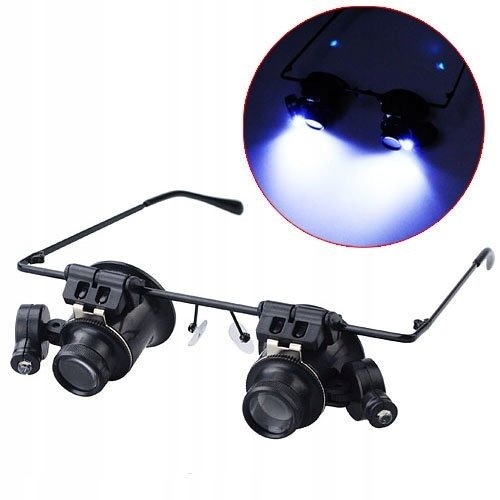 Лупа у вигляді зручних окулярів, завдяки чому не забирає руки під час роботи. Це дозволяє виконувати точні роботи з моделювання, годинникарства, сервісу, електроніки тощо. Завдяки вбудованим світлодіодним діодам в обох «склянках» ми можемо працювати навіть у приміщеннях з поганим освітленням.