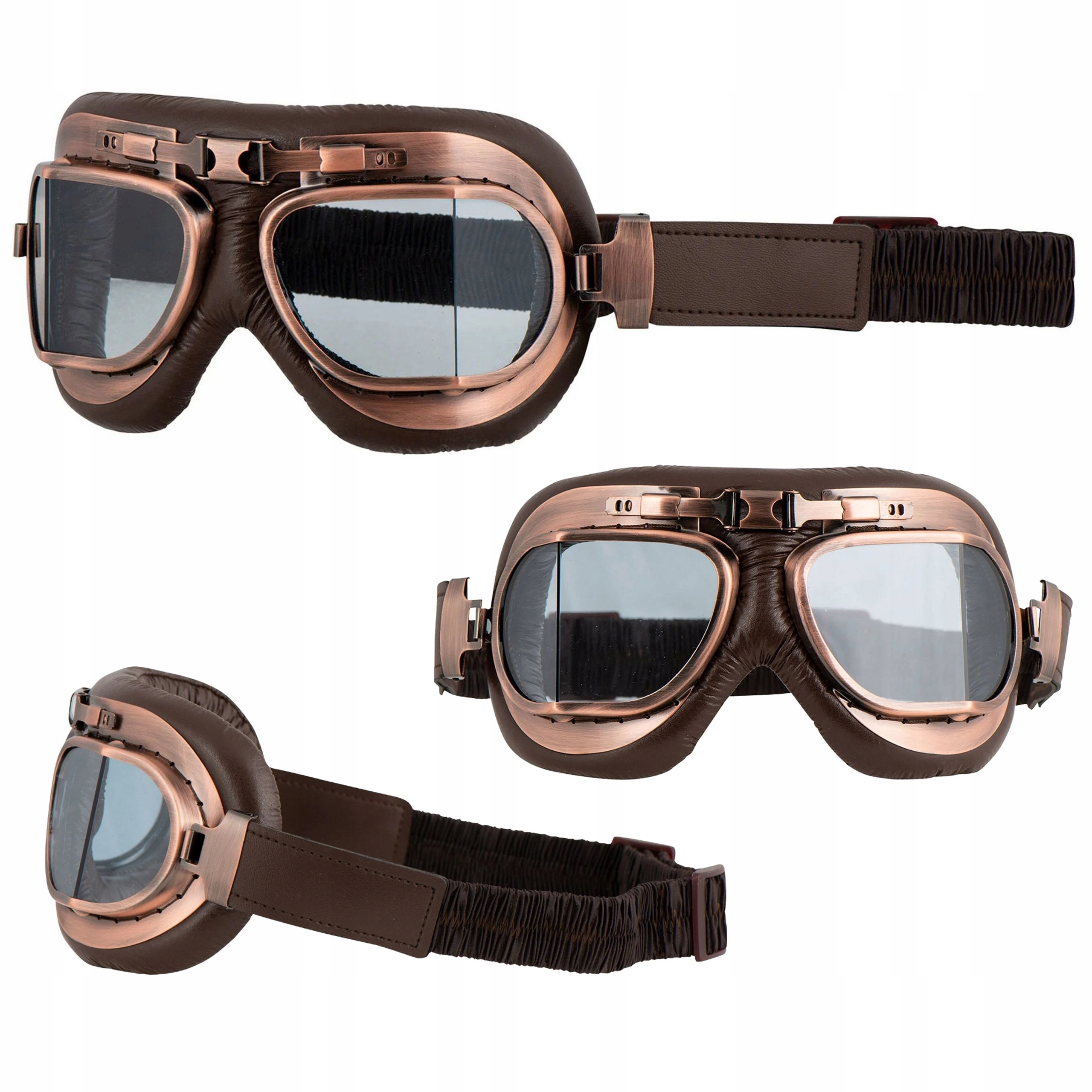 Ці класичні окуляри мотоциклів відносяться до окулярів пілотів з початку епохи авіації. Ці окуляри, як і їх прототип, ефективно захищають від вітру та припливу повітря та забезпечують хорошу видимість. Світловики пришивають до м'якого пластику. Лінзи виготовлені з пластику, що робить їх надзвичайно міцними та стійкими до переломів.