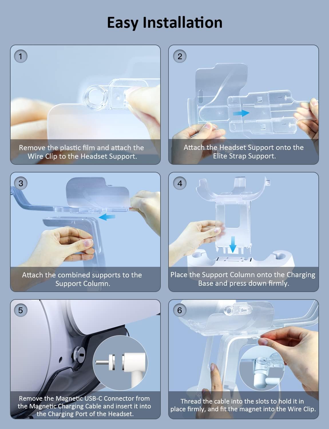 - Блискавична зарядка: повністю зарядіть гарнітуру Oculus за ~3,5 години, а сенсорні контролери — за ~2,5 години. Після завершення встановлення помістіть свій Oculus Quest 2 у зарядну станцію, і магнітний зарядний кабель автоматично приєднається до магнітного роз’єму. Акумуляторні батареї та кришки контролера позбавлять вас від нескінченної заміни батарей, заощаджуючи ваші гроші.