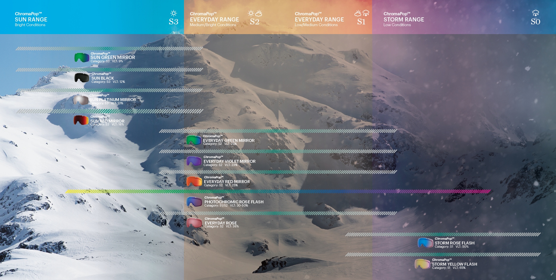 - Лінзи #ChromaPop – це інноваційний продукт, який здатний фільтрувати пересічні довжини хвилі різних кольорів. У результаті можна усунути помилки кольору, і наш мозок швидше розпізнає СПРАВЖНІ КОЛЬОРИ.