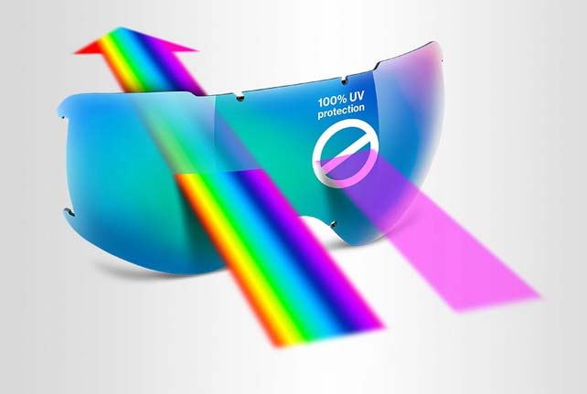 - Фільтри, що поглинають УФ-випромінювання, вбудовані безпосередньо в сировину, захищають сітківку на 100% від шкідливого УФ-випромінювання довжиною до 400 нм. Усі лінзи забезпечують 100% захист від UVA, UVB та UVC випромінювання. Це також є основою для назви компанії Uvex: uv-ex = без ультрафіолетового випромінювання.