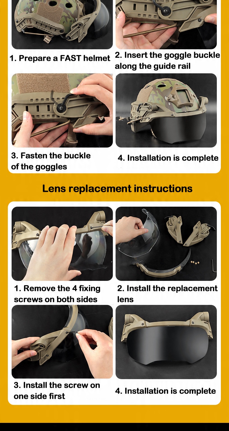 Військові складні окуляри, тактичні лінзи, пейнтбол, страйкбол, захисні окуляри, окуляри для стрільби на відкритому повітрі для швидкого шолома
