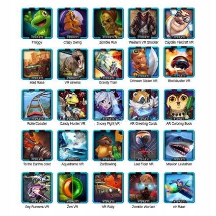 У співпраці з Fibrum ми пропонуємо понад 25 мобільних додатків, завантаживши які ви зможете спробуйте 3D і 360° ігри. Тепер просто натисніть кілька кнопок і віртуальна реальність з’явиться на вашому телефоні!