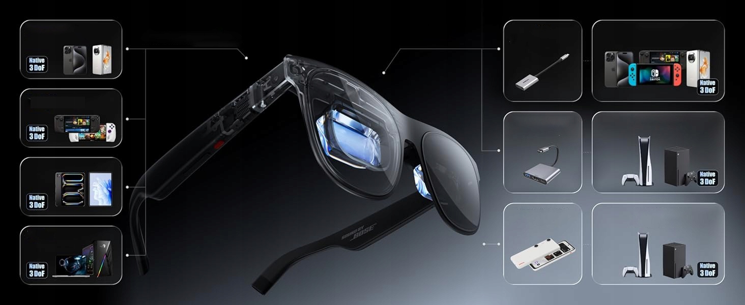 - 3DOF: «Підтримує 3 ступені свободи за допомогою окулярів»