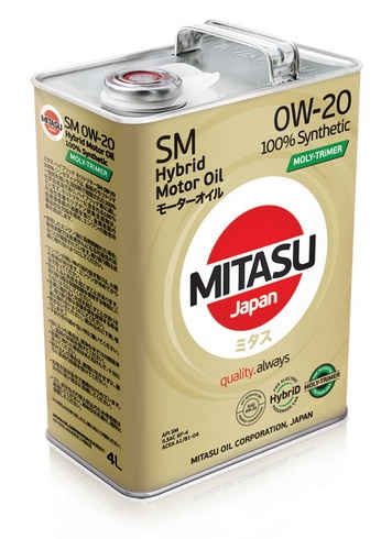MITASU HYBRID MOLY-TRiMER SM 0W-20 100% Synthetic є ідеальним рішенням для гібридних автомобілів. Виготовляється з повністю синтетичної моторної оливи та пакету присадок за новітньою технологією MOLYTRiMER. Повністю розчинне органічне з’єднання молібдену, що міститься в MOLY-TRiMER, заповнює структурні дефекти на поверхні металу пари тертя (поршень-циліндр, втулка-шийка вала), створюючи мастильну плівку з унікальним низьким коефіцієнтом тертя, збільшуючи довговічність двигун.