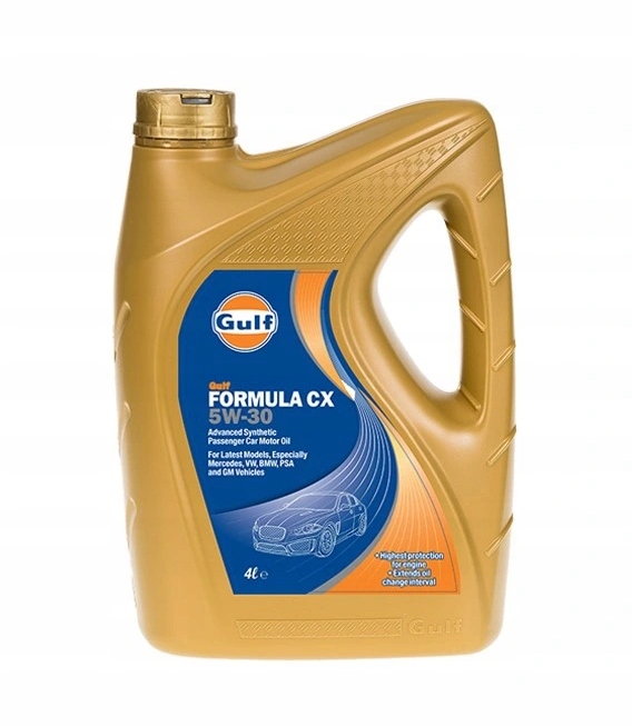 Gulf Formula CX 5W-30 - чудова моторна олива для легкових автомобілів, повністю сумісна з каталітичним нейтралізатором, виготовлена за технологією "Mid SAPS" (масла зі зниженим вмістом сульфатної золи , фосфор і сірка). Розроблено спеціально для потреб сучасних високопродуктивних легкових автомобілів, позашляховиків, мікроавтобусів і вантажівок з бензиновими або дизельними двигунами, яким потрібні масла найвищого класу якості ACEA C2/C3. Технологія оливи забезпечує виняткову потужність очищення вихлопних газів і захист від зносу, а також мінімізує відкладення в двигуні та турбокомпресорі, що в кінцевому підсумку підвищує ефективність двигуна. Олива відповідає найновішим стандартам вихлопних газів, розробленим провідними виробниками автомобілів, такими як Daimler, VW, GM, BMW і PSA.