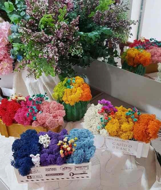 Окремі партії пофарбованої глини можуть дещо відрізнятися за кольором і рівнем насиченості барвником. На моху, пофарбованому в темніші кольори, різниці майже немає, але при замовленні світліших кольорів помітна більша різниця у верхній і нижній частині. Ви повинні пам’ятати, що це жива рослина і по-різному сприймає барвники.