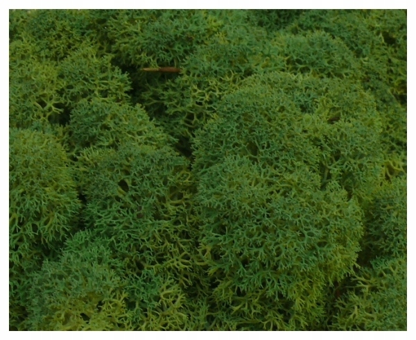 Стіни з моху, які стають дедалі популярнішими, насправді не «вирощують» мох і лишайник: оленяний мох (Cladonia ragniferina). Це дивовижний вид з межі світу водоростей і грибів, має деревоподібну форму і зберігає привабливий зелений колір навіть без контакту з землею. Ці особливості були використані для створення модулів і навіть цілих зелених поверхонь з цих лишайників.