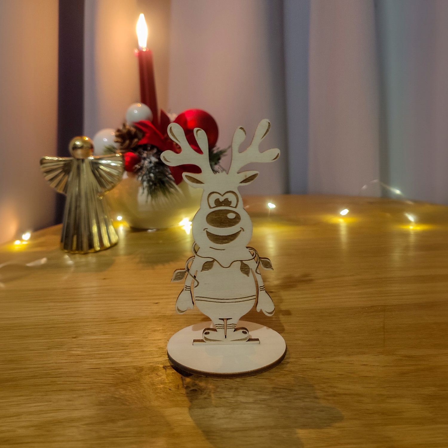 дерев'яні оленя на основі - це чарівна прикраса, яка додає до Різдва магію та тепло.