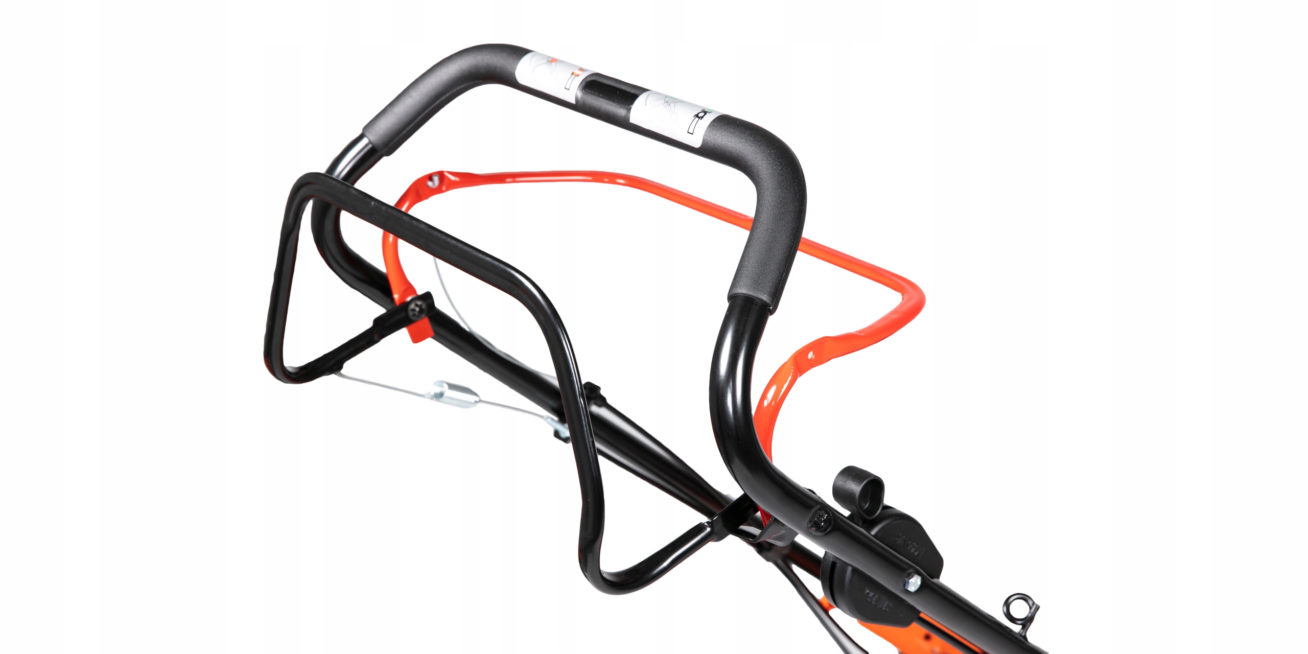 І сплав, і важіль приводу притискаються до ергономічної, м'якої ручки, яка призначена для зменшення вібрацій під час роботи косарки.