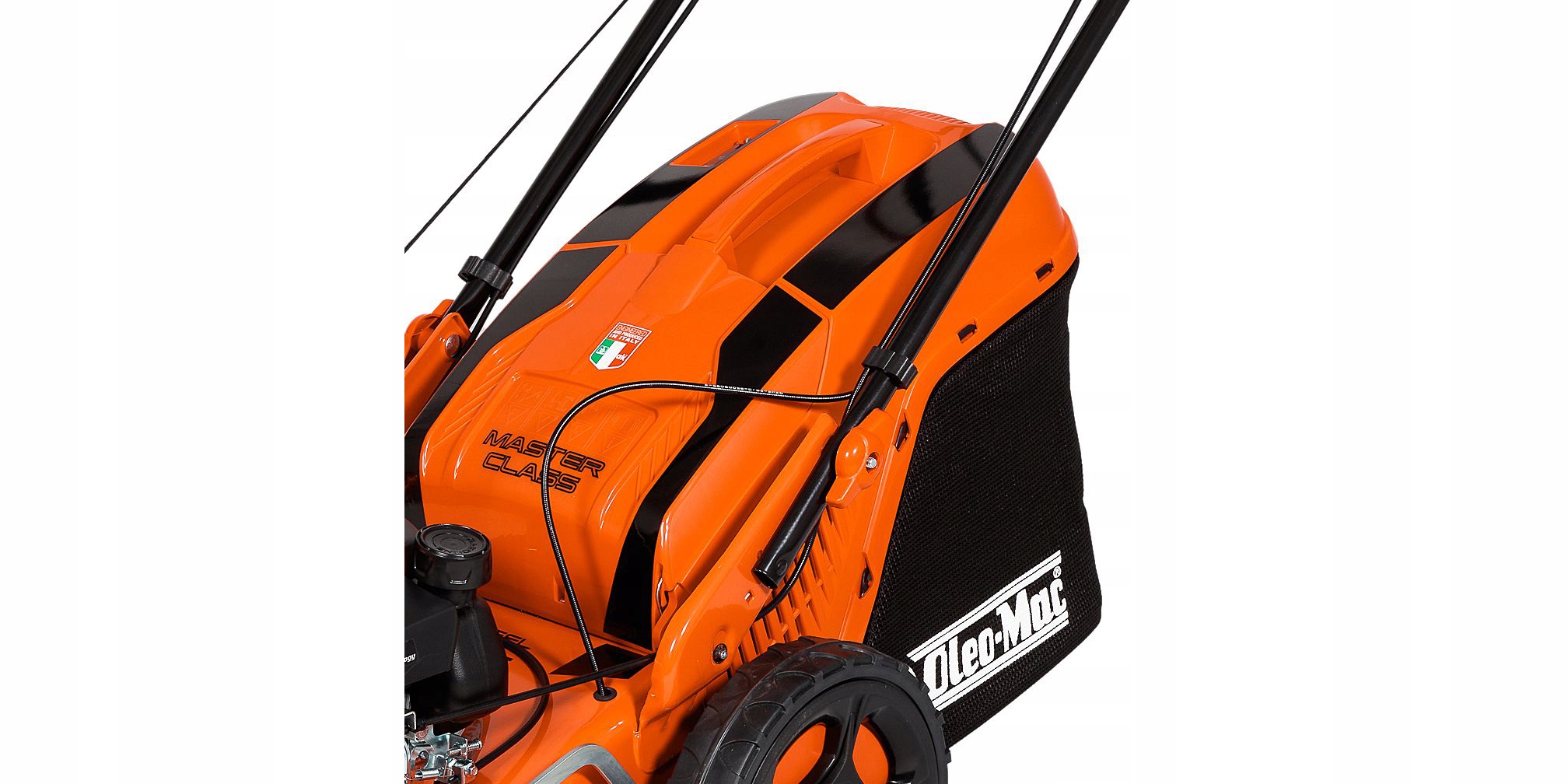 - комфорт використання - 3,6 км/год їзди та великі колеса з кульковими підшипниками забезпечують плавне водіння та легке маневрування навіть на нерівній місцевості. Сприяти початок косарки, а центральне коригування висоти розрізу дозволяє швидко адаптувати до умов газону. 4