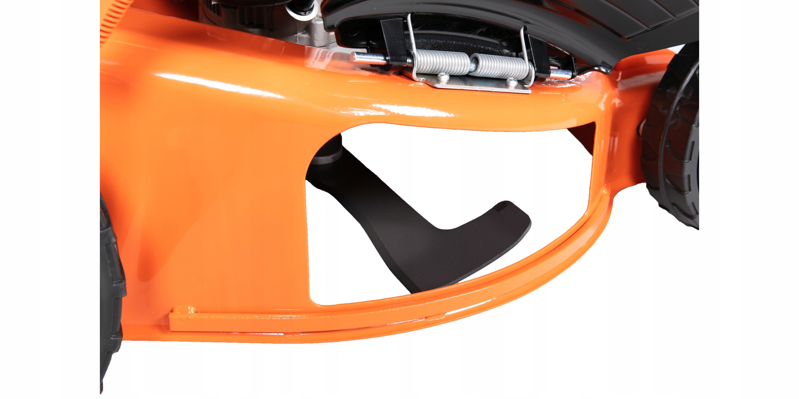 І сплав, і важіль приводу притискаються до ергономічної, м'якої ручки, яка призначена для зменшення вібрацій під час роботи косарки.