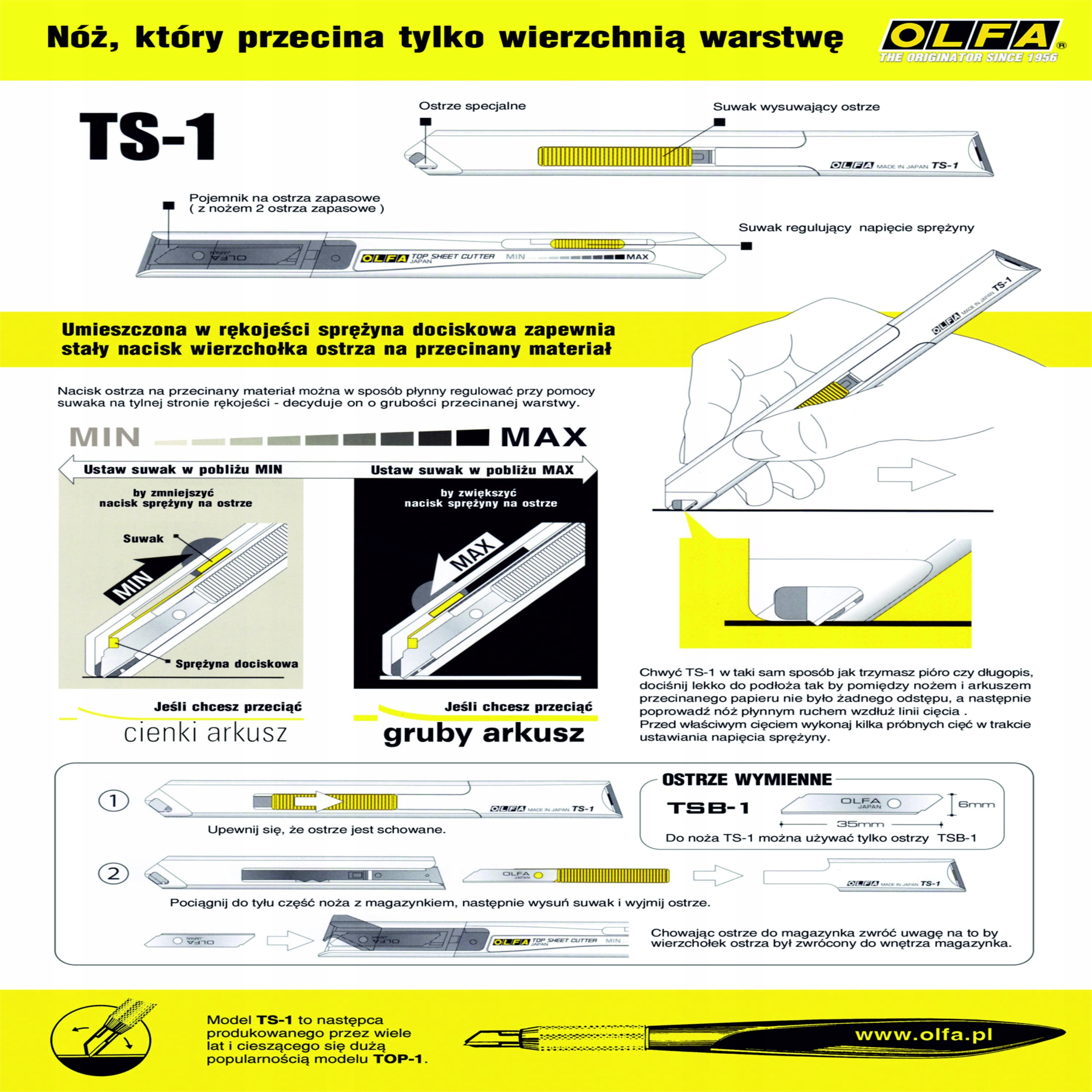 Ніж TS-1 слід тримати так само, як ручку або перо. Водячи ніж плавним рухом уздовж лінії різу, його слід злегка притискати до землі, щоб між ножем і аркушем паперу, що розрізається, не було місця.