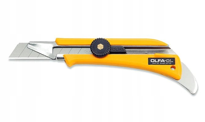 сегментальний ніж з лопатками шириною 18 мм, спеціально розробленими для різання килима підлоги. Витягнутий путівник дозволяє безпечно зрізати з довшою частиною леза без ризику його порушення. В інших ножах лезо може бути безпечно розширене до довжини одного сегмента. Завдяки подовженому путівника з цим ножем ви можете безпечно вирізати матеріали до 2 см. Нож оснащений багатофункціональним сталевим плавником, який можна натиснути в підкладку в кути, відкрити банку фарбою або клеєм, затягувати гвинт тощо. Ручка ножа, виготовлений з міцного пластику (ABS). 4 Покриття підлоги в кутах