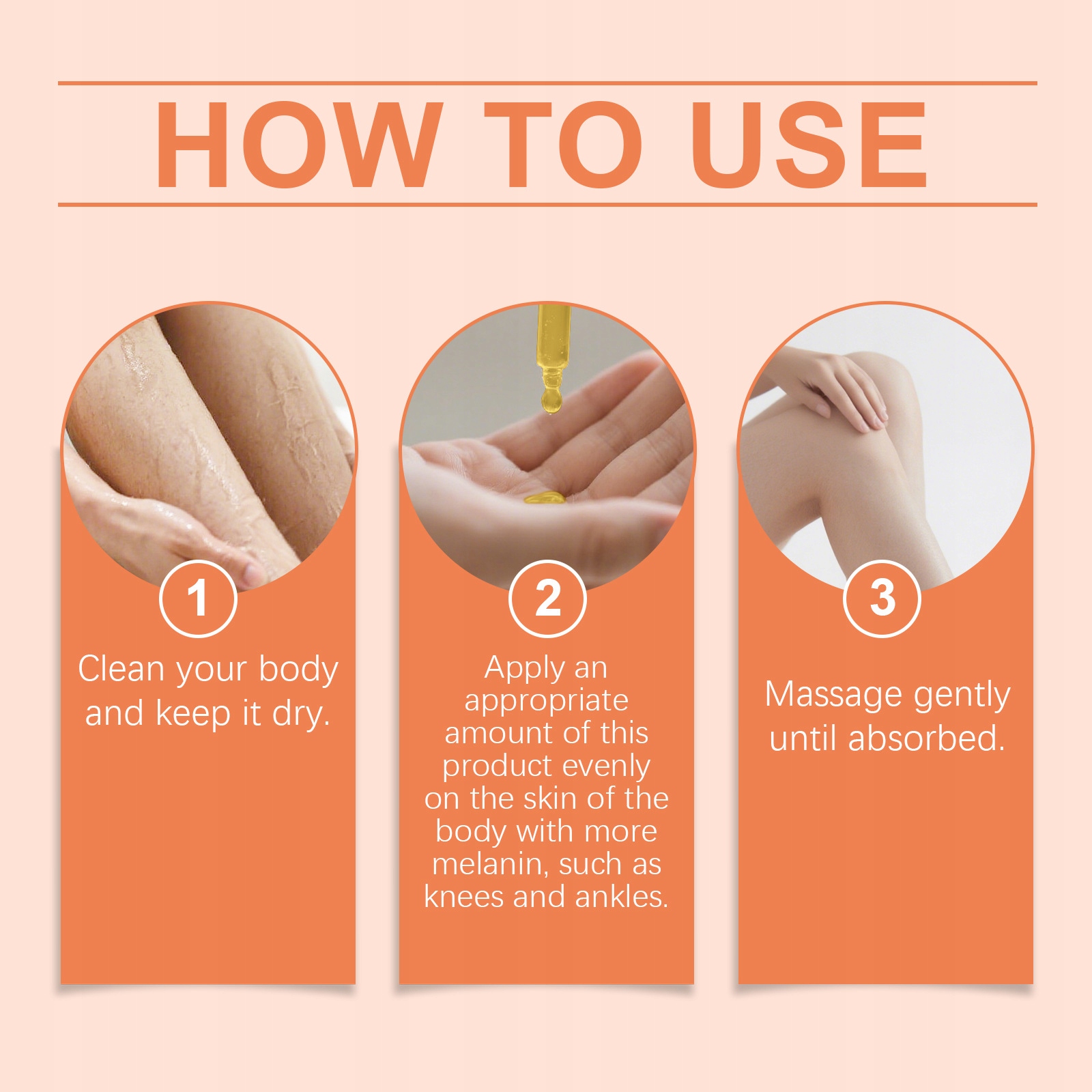 【Освітлення темних ділянок】 Лікувальна олія Acanthosis Nigricans відлущує мертву шкіру та шкіру, що лущиться, зволожує, пом’якшує та розгладжує загрубілі лікті та коліна, а також допомагає відновити ці темні плями та вирівняти тон шкіри.