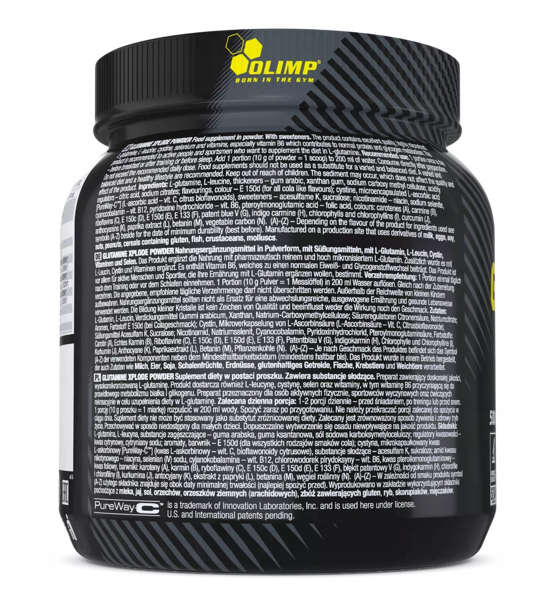 olimp glutamine xplode powder® - це продукт у вигляді ідеально розчиняючого порошку, який можна придбати у трьох надзвичайно фруктових і максимально освіжаючих смаках: лимон, помаранчевий, ананас. Підготовка продається в упаковці з вагою 500 г, які містять аж 50 запропонованих порцій продукту.