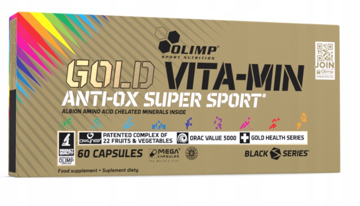 Olimp Gold VITA-MIN anti-OX Super Sport Mega Caps - вдосконалена дієтична добавка, створена для фізично активних людей і спортсменів, які змагаються. Продукт поєднує в собі комплекс вітамінів і мінералів з унікальною сумішшю рослинних інгредієнтів з сильними антиоксидантними властивостями, підтримуючи організм у боротьбі з окислювальним стресом і підтримуючи регенерацію після інтенсивних фізичних вправ.