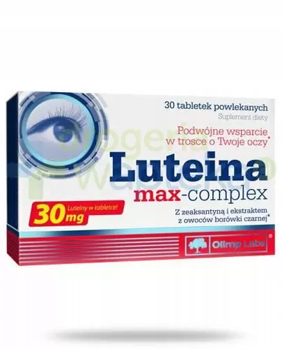 Лютеїна макс-комплекс - дієтична добавка у формі таблеток, вкритих оболонкою, що містить композицію натурального лютеїну і зеаксантину та екстракт плодів чорниці. Екстракт плодів чорниці, що містить антоціанідини, благотворно впливає на зір завдяки своїм антиоксидантним властивостям (завдяки яким нейтралізує дію вільних радикалів, що утворюються в організмі), а також завдяки благотворному впливу на кровоносні судини. Лютеїн - природний каротиноїд, який міститься в оці. Природно, найбільша його концентрація знаходиться в макулі, а також він розсіяний по сітківці і кришталику. Макула сітківки завдяки своїй особливій будові забезпечує так званий центральний зір і відповідає за гостроту зору.