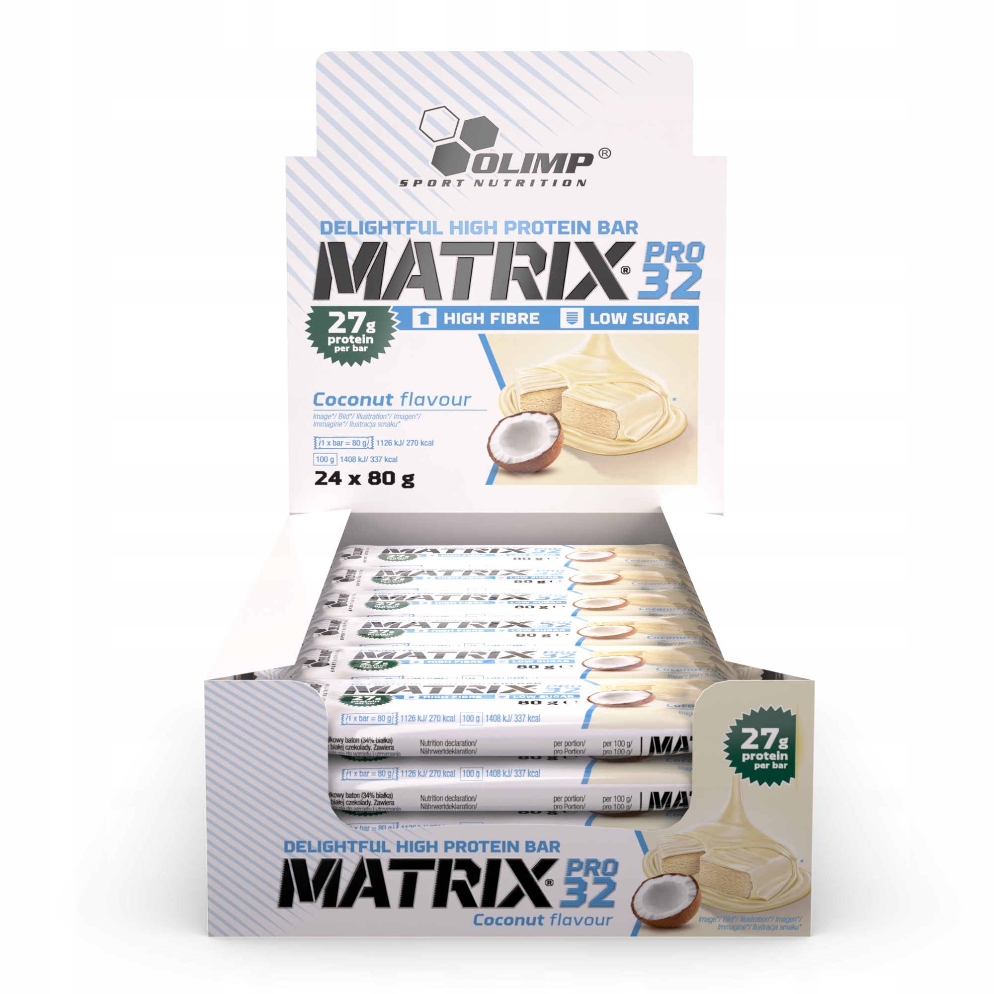 Matrix® Pro 32 це один із протеїнових батончиків після тренування, високоцінний перекус, рекомендований кожному прихильнику здорового харчування та активного способу життя. Без штучних барвників, консервантів та пальмової олії! Але з високим вмістом клітковини та низьким вмістом цукру! Завдяки білковому снеку Olimp Sport Nutrition: